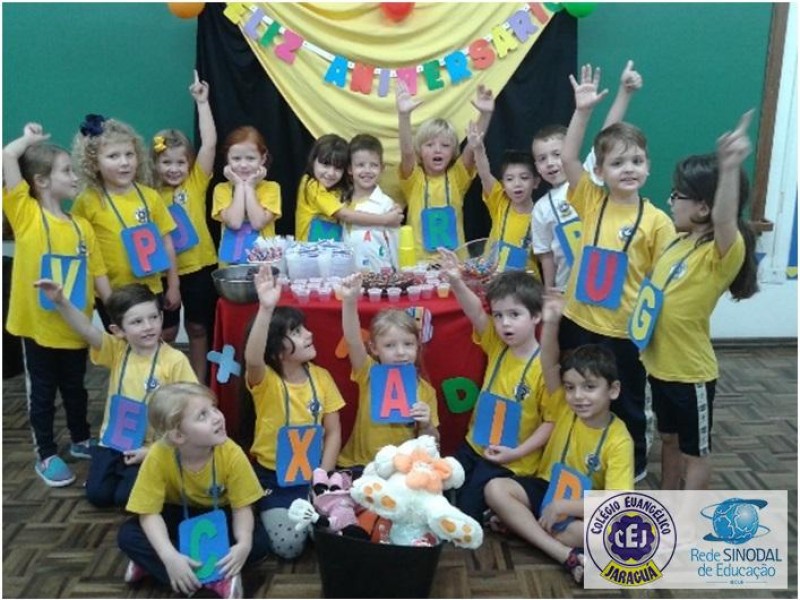A educação infantil como primeira etapa da educação básica, no Colégio Jaraguá, atende a crianças a partir dos 3 anos até os 5 anos de idade, com turmas constituídas por grupos etários.