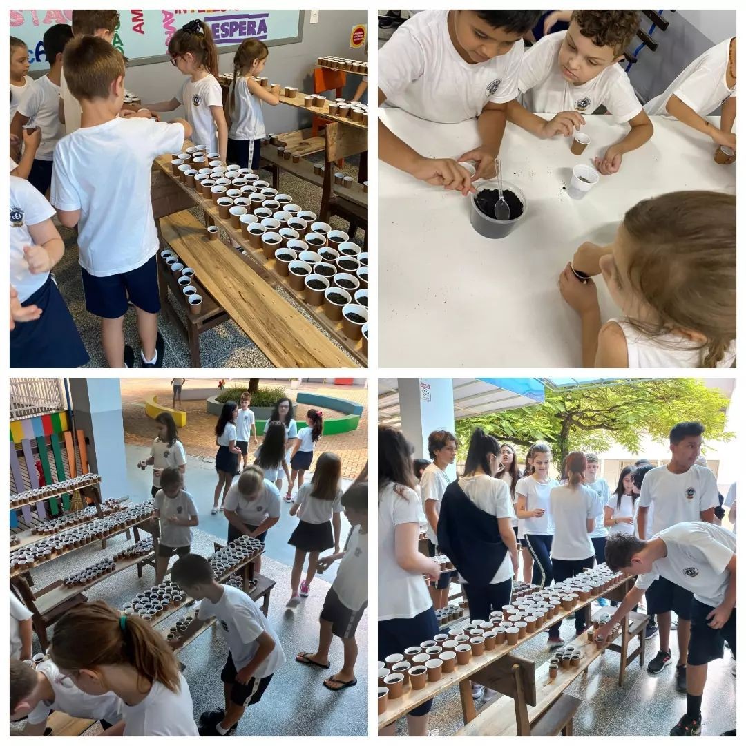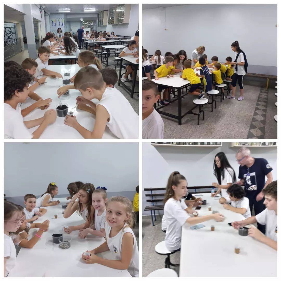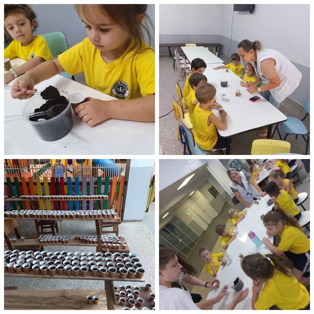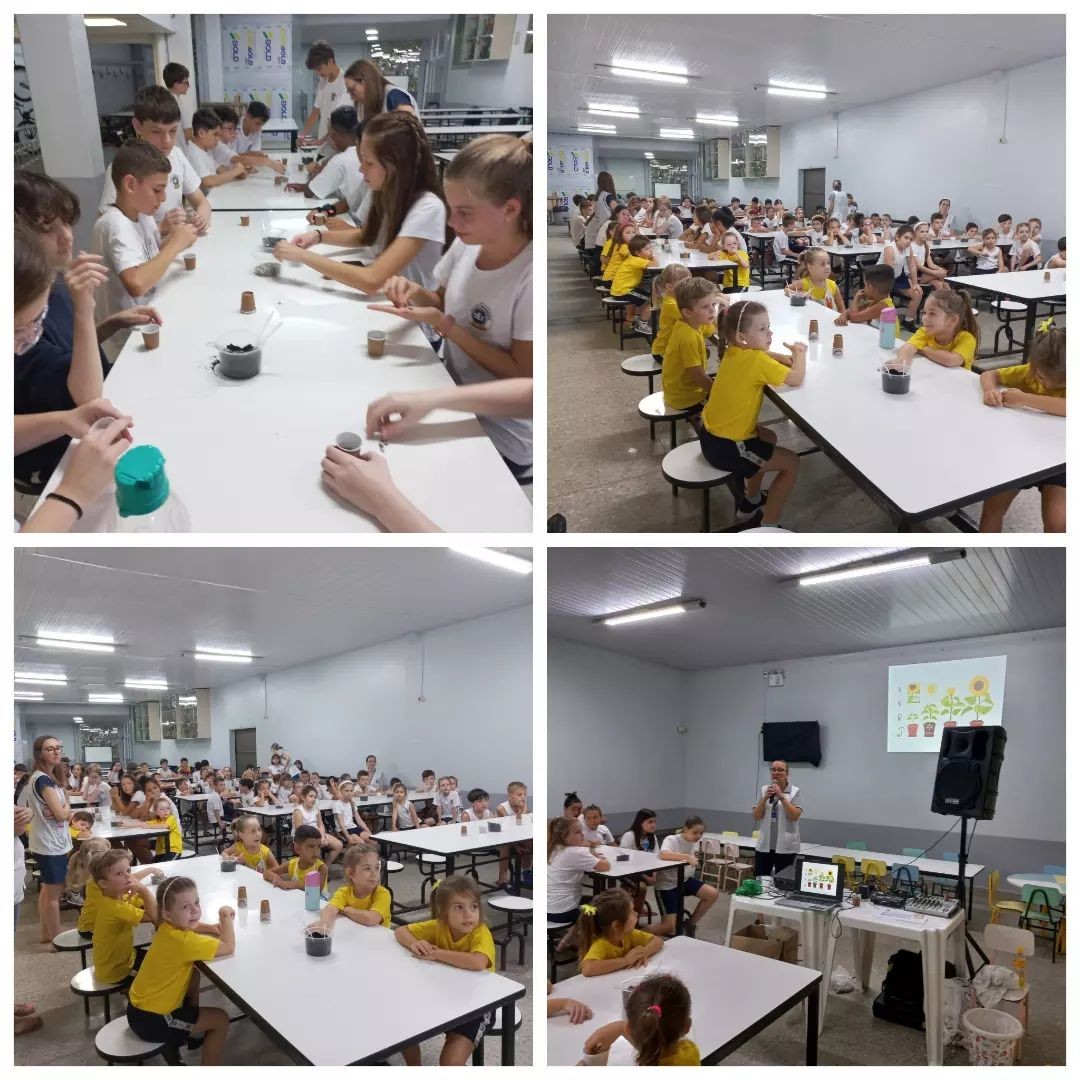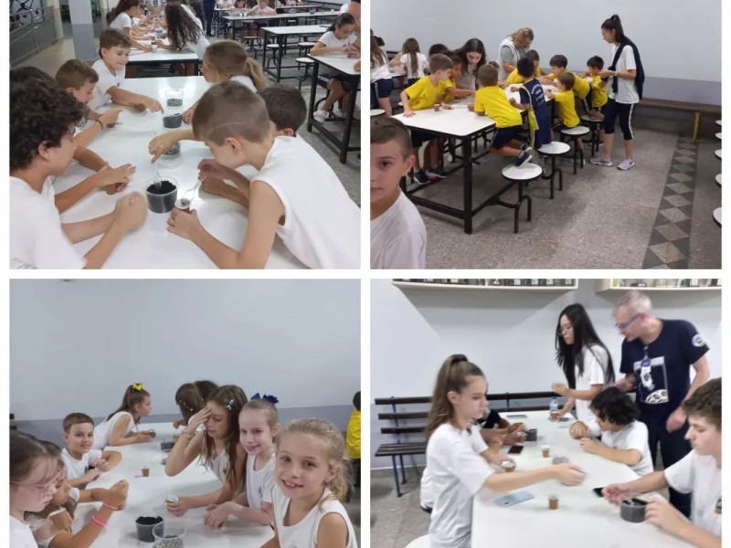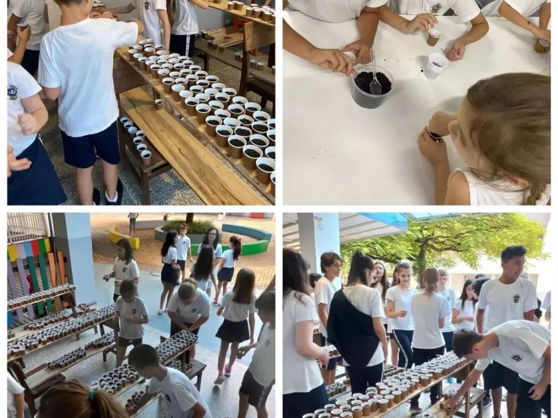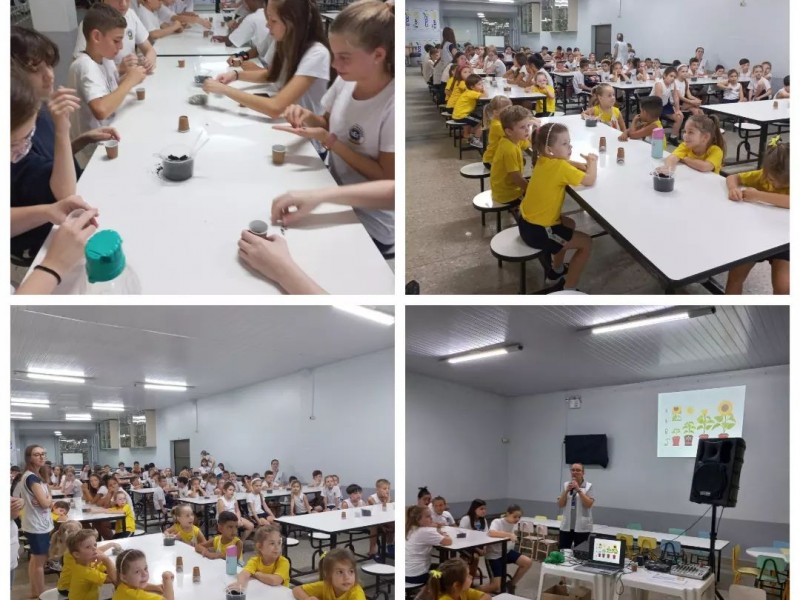 03/03 - Nos reunimos no refeitório para realizar o plantio de algumas sementes de girassol.