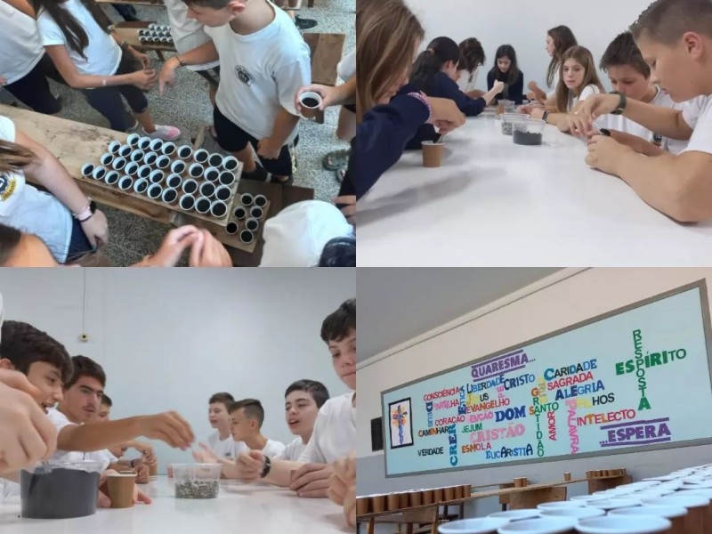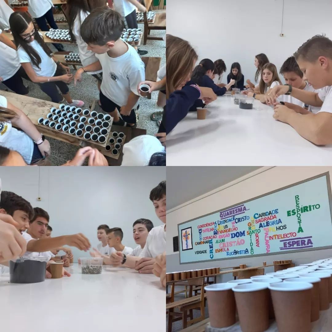 Na expectativa de vivenciarmos o significado deste tempo, de forma prática, tivemos nesta sexta-feira dia 03/03 um momento especial com nossos(as) alunos(as). Nos reunimos no refeitório para realizar o plantio de algumas sementes de girassol. Durante o tempo de quaresma observaremos e acompanharemos o crescimento das sementes plantadas. O girassol será o símbolo usado na reflexão em nossa Celebração de Páscoa que acontecerá no dia 06/04 e compreendemos que possibilitar a participação ativa dos(as) alunos(as) na atividade tornará a Celebração ainda mais significativa.