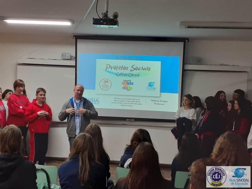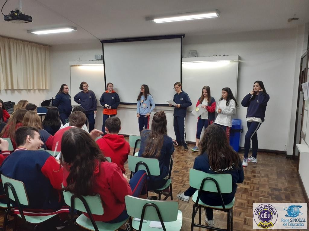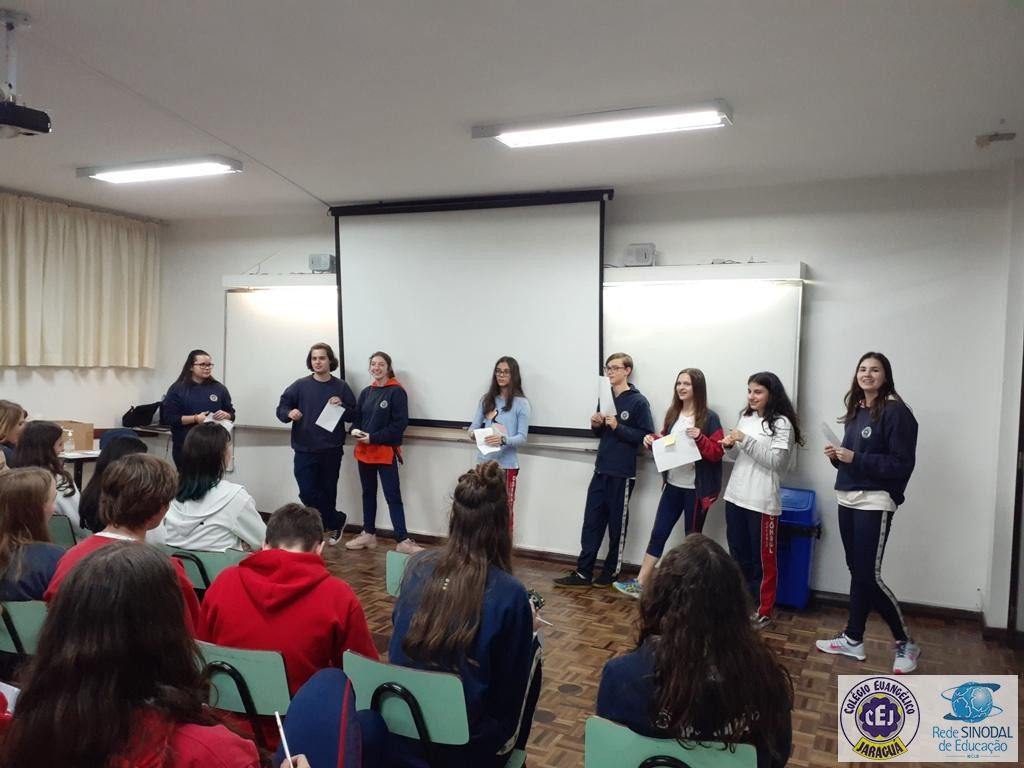 Mais notíciasNo dia 06 de setembro aconteceu no CEJ o 2º Encontro do Intercâmbio entre jovens voluntários(as) do Colégio Evangélico Jaraguá e Colégio Cônsul Carlos Renaux de Brusque. O objetivo deste intercâmbio é promover a convivência, integração e troca de experiências de estudantes que se dedicam à atividades voluntárias em suas escolas em uma tarde agradável de trocas , músicas, contação de histórias e dinâmicas de grupo. Esperamos contagiar cada vez mais outras pessoas a se dedicarem à arte do voluntariado. “O ideal seria ter o coração na cabeça e cérebro no peito... Assim, pensaríamos com amor e amaríamos com sabedoria.” (Autor(a) desconhecido(a)).