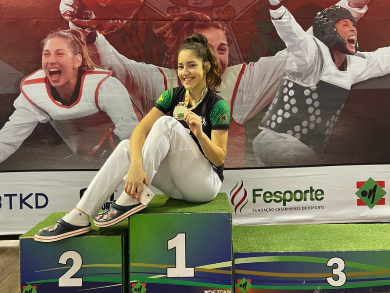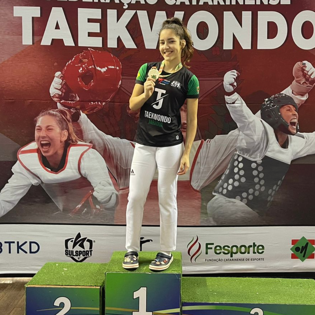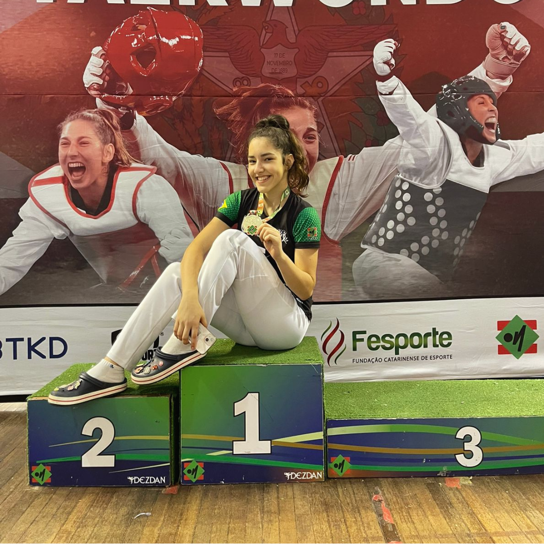 Mais notíciasIsabelle Maestri Dalapria, do 3º ano do Ensino Médio, conquistou o título de tetracampeã catarinense de Taekwondo neste final de semana, na cidade de Blumenau. O evento garantiu a vaga da atleta para integrar a seleção catarinense na disputa do Campeonato Brasileiro, que acontecerá na Bahia no mês de agosto. Em julho, Isabelle embarca para Querétaro, no México, para disputar o Pan-Americano. Parabenizamos a atleta por essas conquistas incríveis e por nos representar com tanto talento e dedicação!