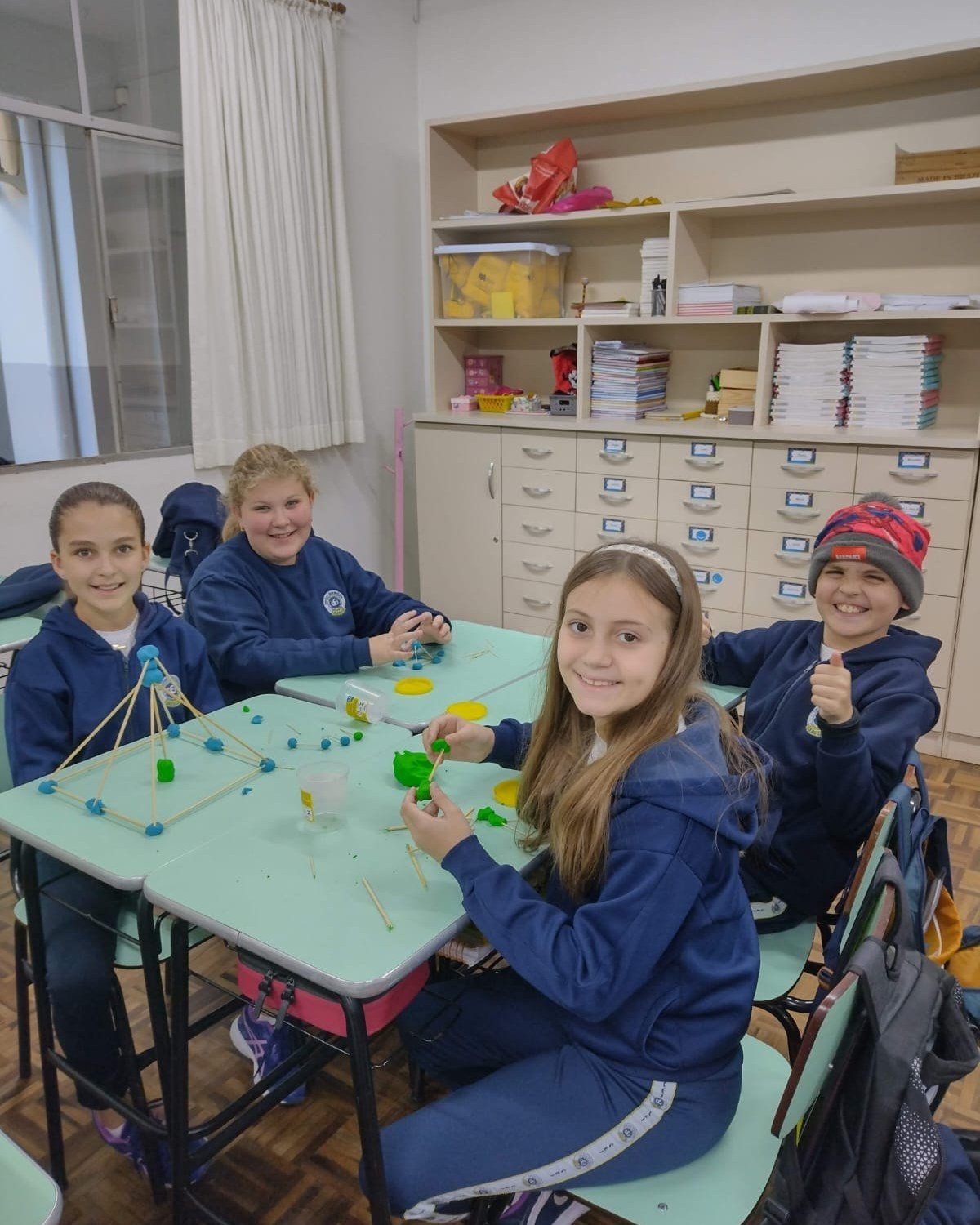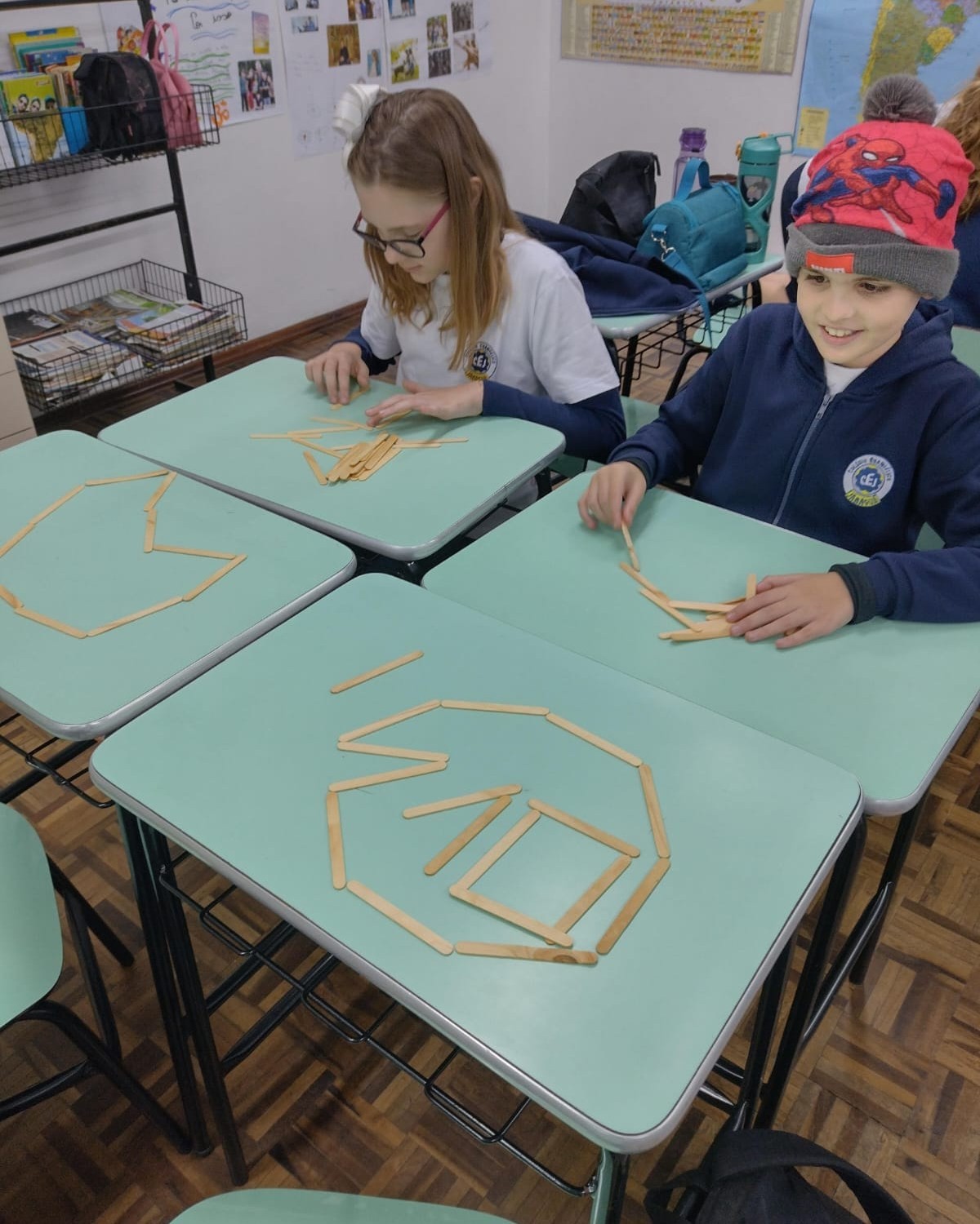 Mais notíciasOs alunos do 5°ano C, de maneira divertida, construíram diferentes sólidos geométricos, estabelecendo relações que compõem os poliedros.