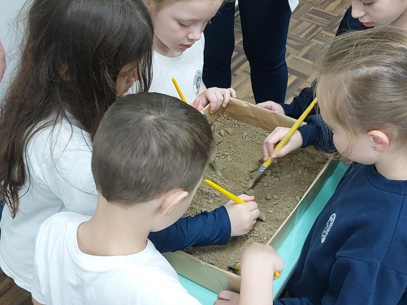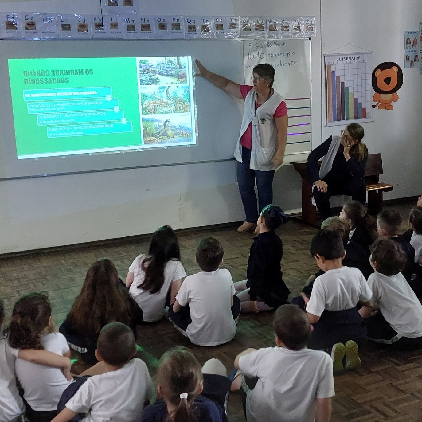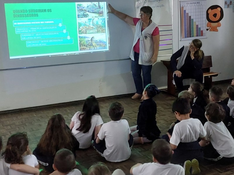 A turma do 1° ano A vivenciou aprendizagens sobre a "Era dos dinossauros" nos meses de agosto e setembro.