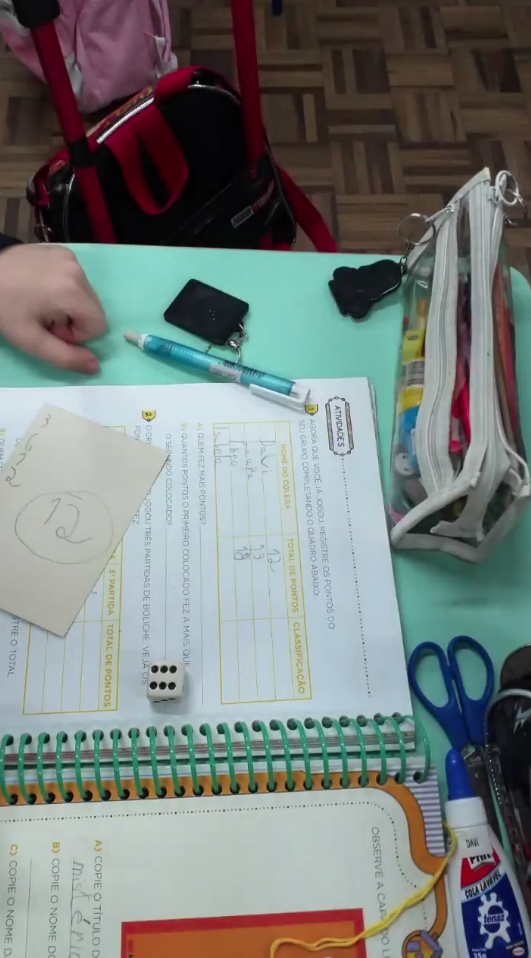 Mais notíciasA turma foi dividida em grupo de 4 participantes e cada aluno teve a oportunidade de jogar 4 vezes um dado, fazendo o registro dos 4 resultados obtidos. A atividade teve como objetivo desenvolver a habilidade de somar mais de duas parcelas e posicionar os jogadores na classificação do maior para o menor, de acordo com a pontuação.