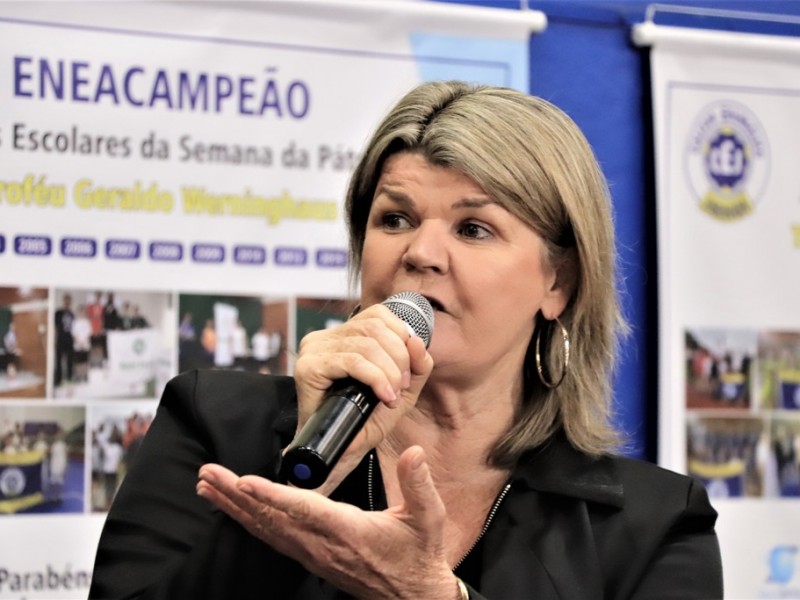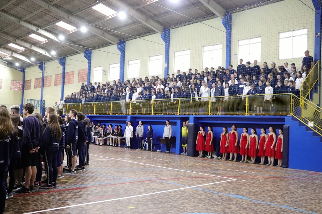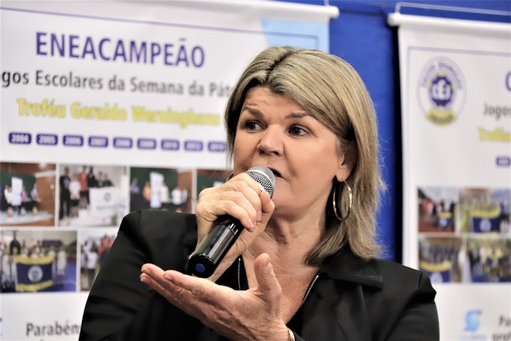 A Secretária Natália exaltou o trabalho dos profissionais de Educação Física e das escolas que incentivam as atividades esportivas e culturais, como o Colégio Evangélico Jaraguá, que tem o recorde de títulos das competições escolares, em nosso município.