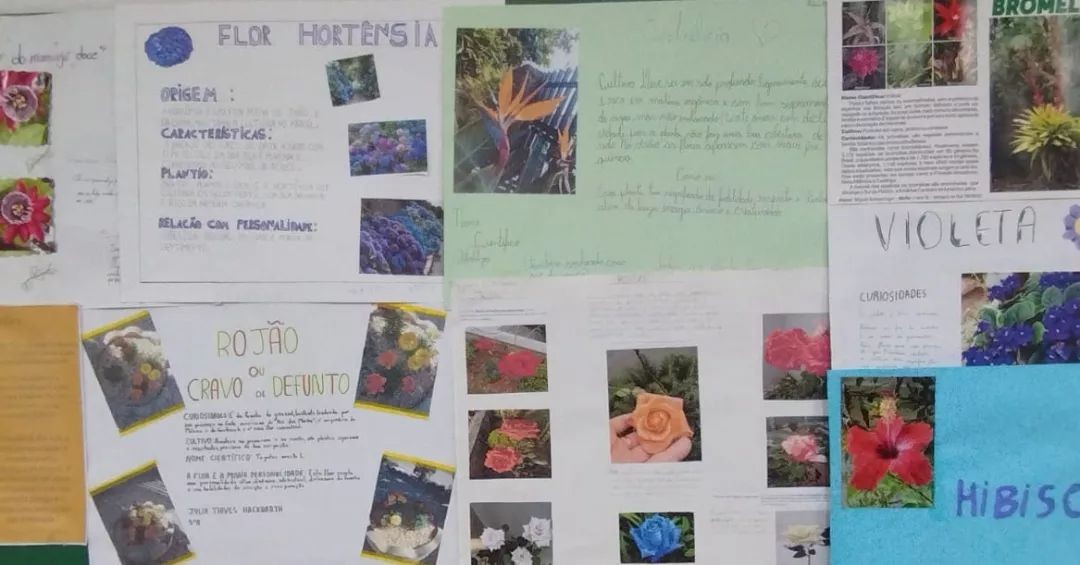 Cada aluno escolheu uma flor, fotografou e pesquisou alguns aspectos acerca da planta. Entre os pontos pesquisados, deveriam relacionar o significado da flor com a personalidade. Depois, elaboraram um cartaz com as informações e apresentaram ao grupo.
