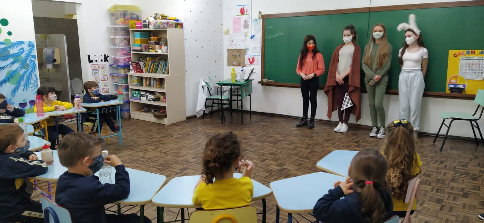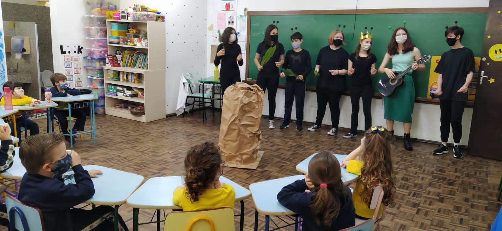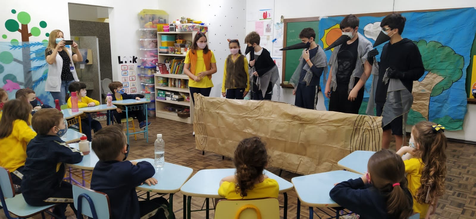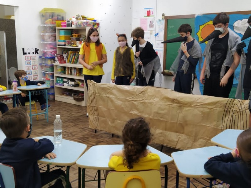 Mais notíciasNo dia 14 de outubro, os alunos do 7º ano A e B encenaram fábulas para alunos do ensino fundamental I. O gênero foi estudado na disciplina de Língua Portuguesa, após o estudo, os alunos se reuniram em grupos, escolheram uma fábula e adaptaram para o teatro.