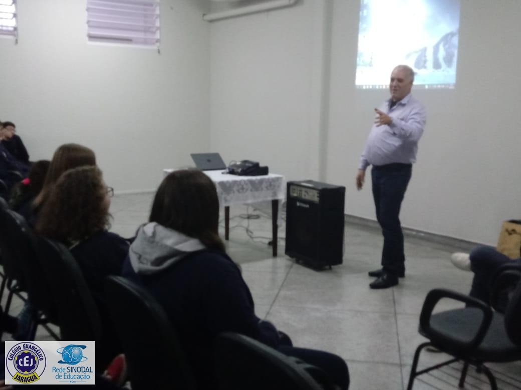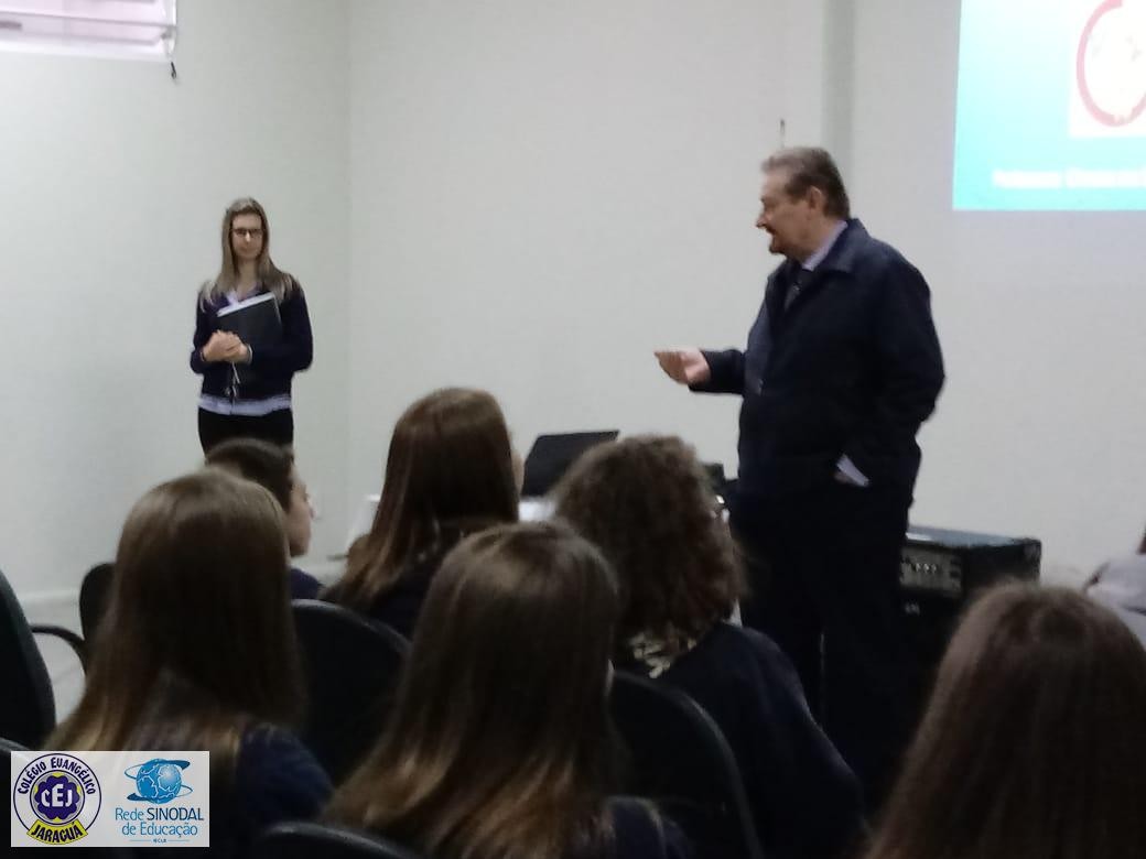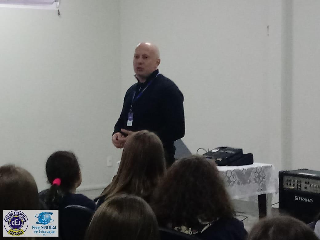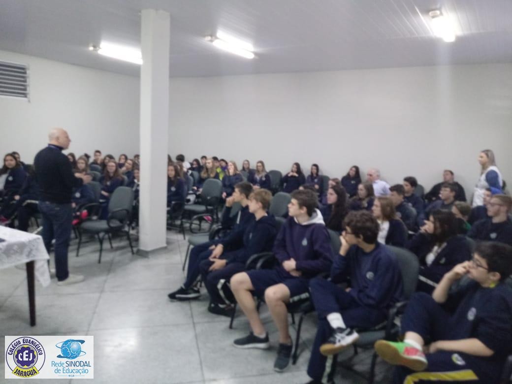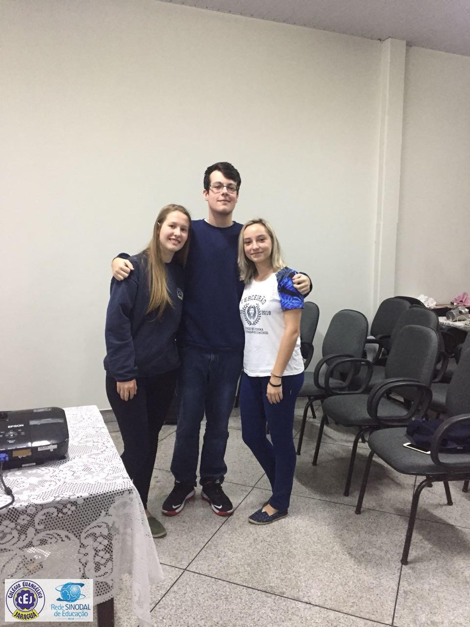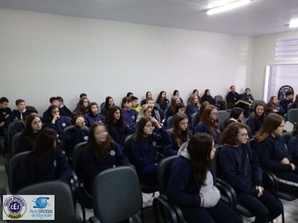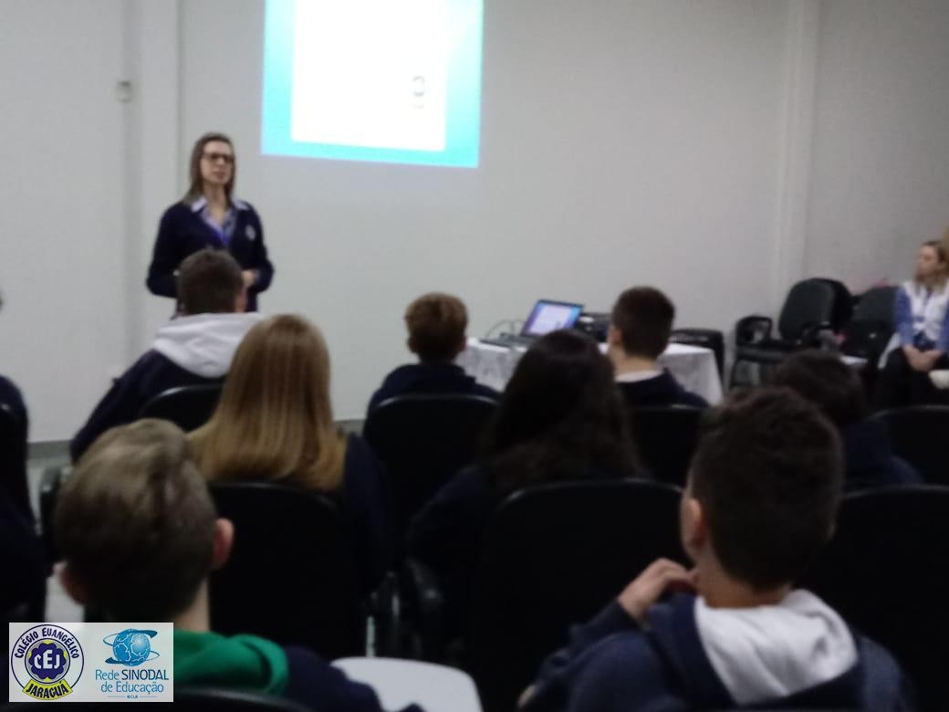 Mais notíciasOs alunos dos 9ºs anos estão se preparando para o início de uma nova etapa na sua escolaridade: o Ensino Médio. Para tanto, estão participando de alguns momentos para conhecer a proposta do Colégio. Um desses momentos foi a apresentação dos professores , que trouxeram um pouco da sua metodologia para os alunos para que os alunos já possam conhecê-los. Além disso, três alunos do Terceirão conversaram com o concluintes do Ensino Fundamental, repassando as suas experiências e vivências nesses anos de Ensino Médio e como o Colégio Evangélico contribuiu para a formação deles.