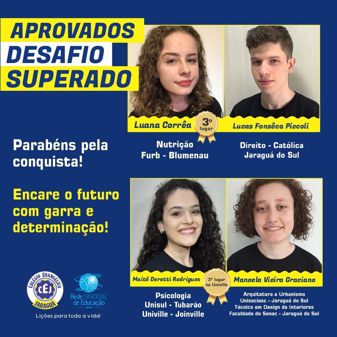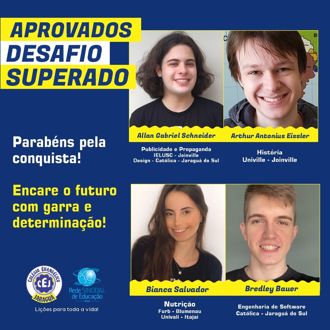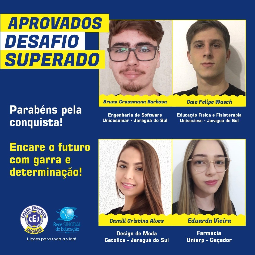 Aprovados 2020! Mais notícias O Colégio Jaraguá alegra-se com a conquista dos alunos nós diversos vestibulares. Parabéns e sucesso todos!!