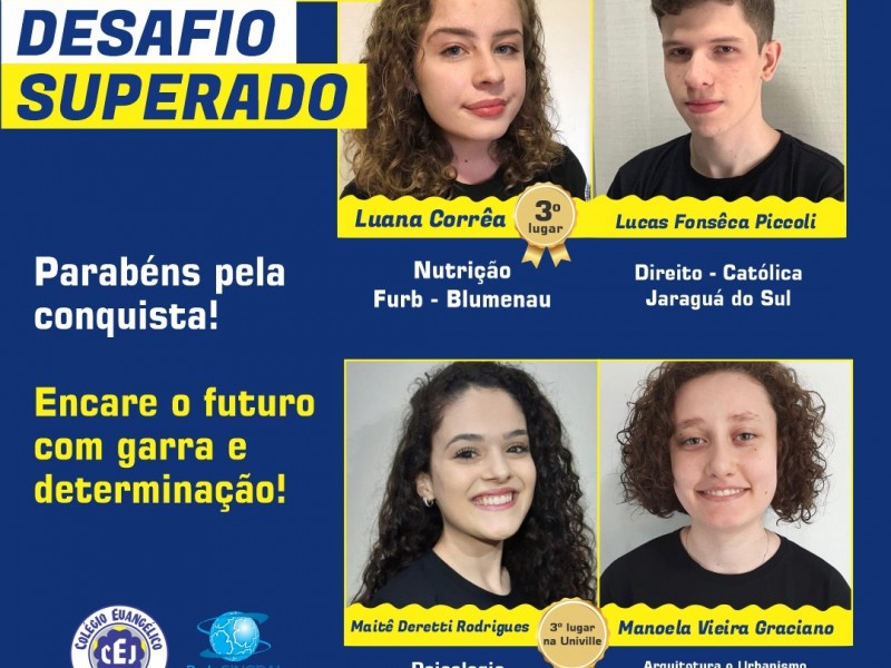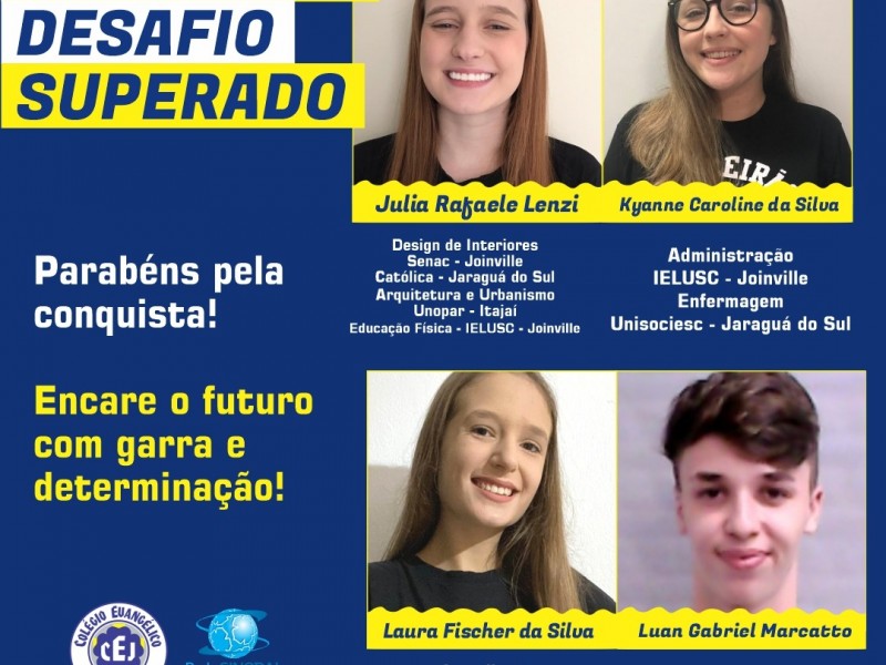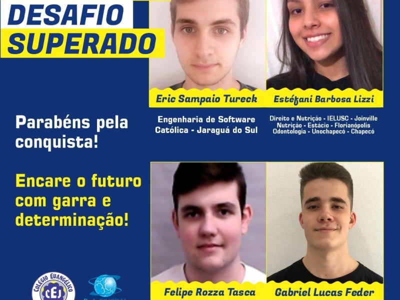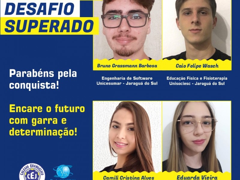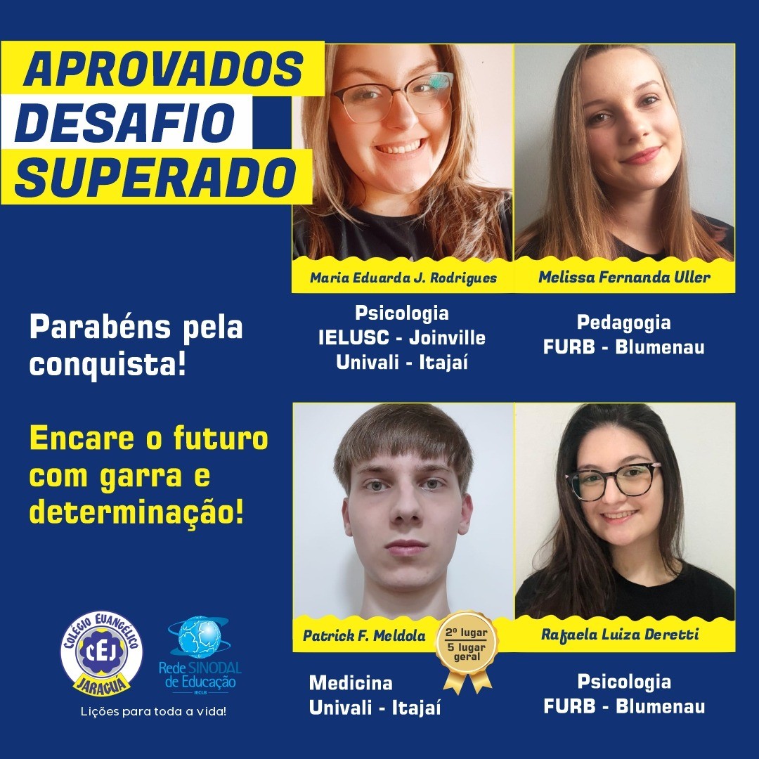 Aprovados 2020! Mais notícias O Colégio Jaraguá alegra-se com a conquista dos alunos nós diversos vestibulares. Parabéns e sucesso todos!!