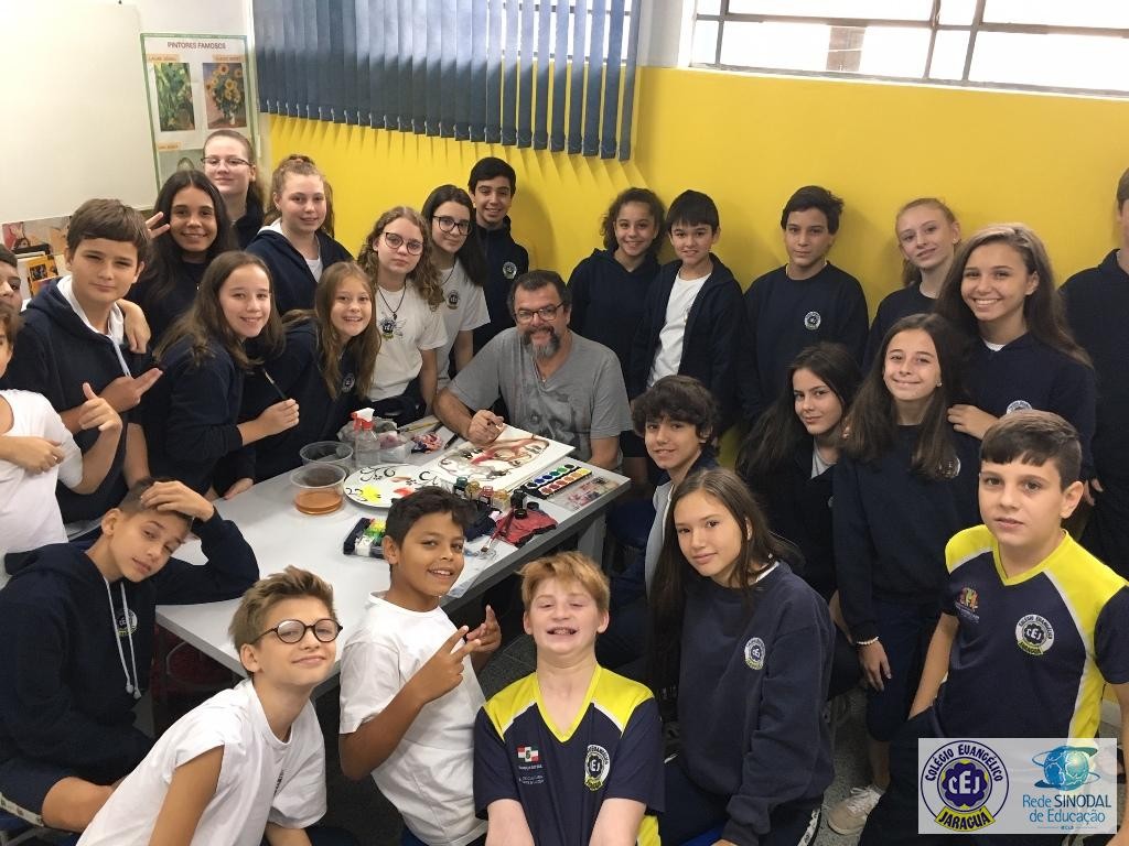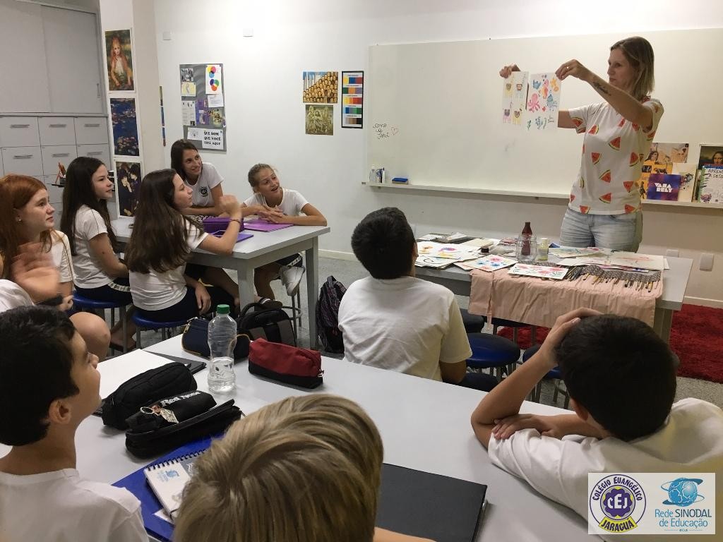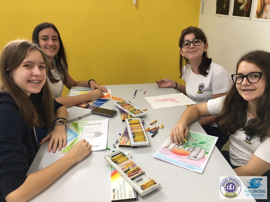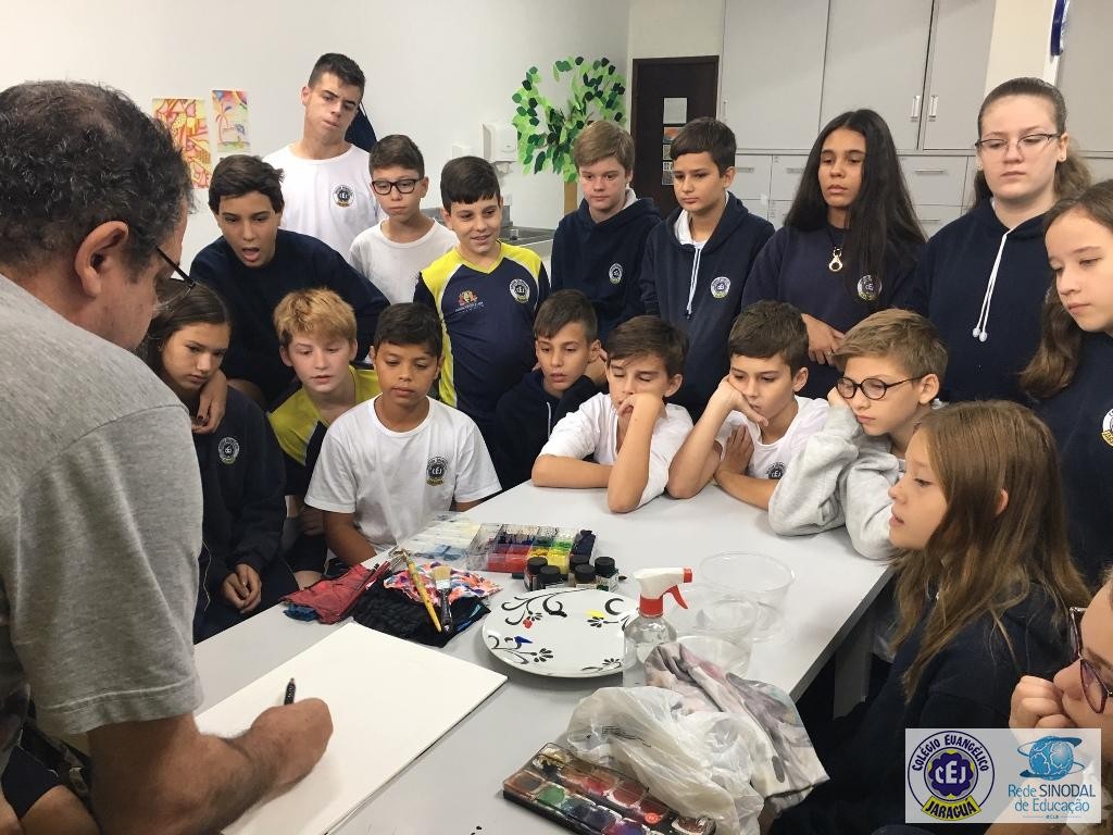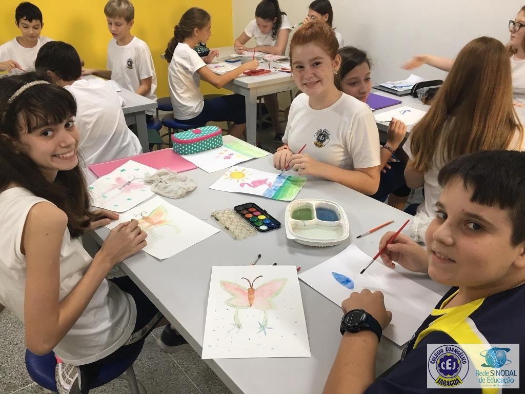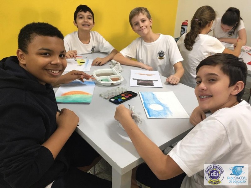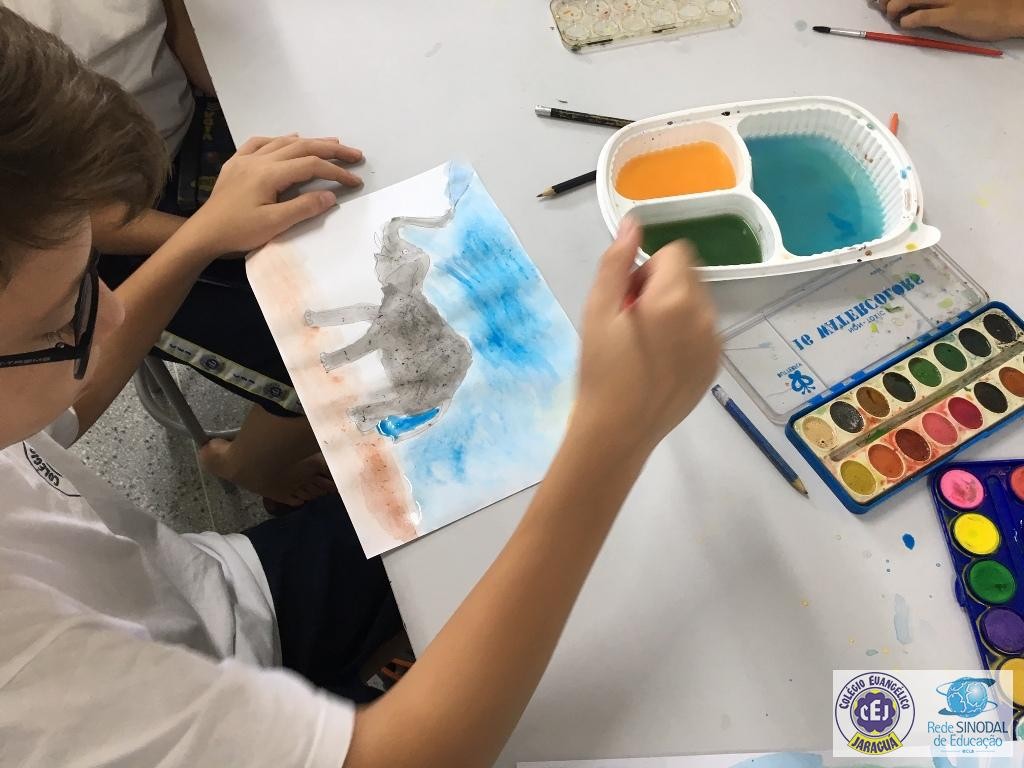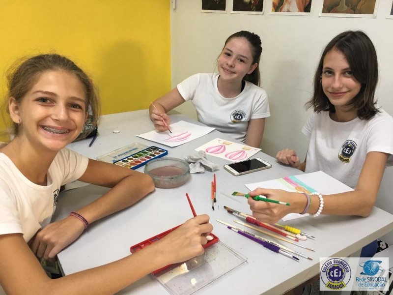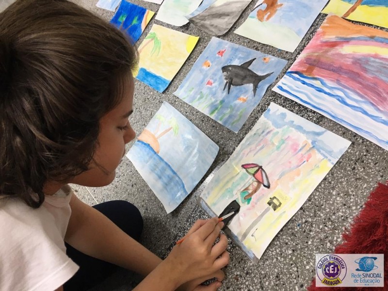 Mais notíciasUm dos conteúdos abordados no primeiro bimestre com o 7˚ ano A e 7˚ ano B foi a Aquarela. Para conhecermos um pouco mais desta técnica milenar, convidamos dois profissionais da área para trazer conhecimento e experiência aos nossos alunos. A artista plástica e design Gilmara Kunchenbecker, que é mãe de uma aluna do nosso colégio, e o artista plástico e designer Fernando Oechsler. Os dois compartilharam muito conhecimento com os nossos alunos, que depois tiveram um momento para desenvolver belos trabalhos com a técnica da aquarela.