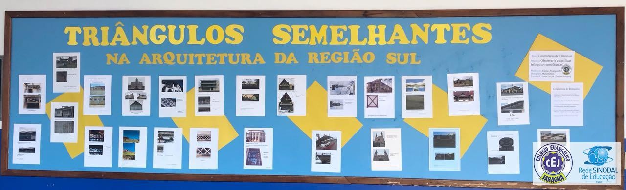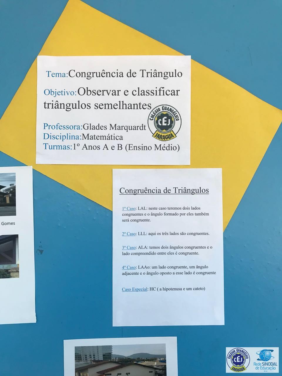 Mais notíciasNo mês de agosto, nas aulas de Matemática, os alunos dos 1ºs anos do Ensino Médio foram desafiados a observar os triângulos na arquitetura da região, com o objetivo de fotografar e classificar quanto aos casos de congruência. Prof: Glades Marquardt