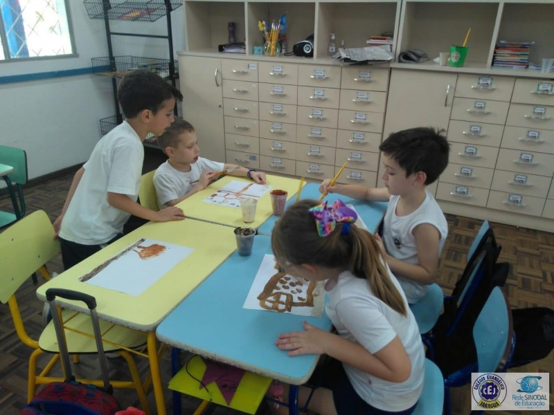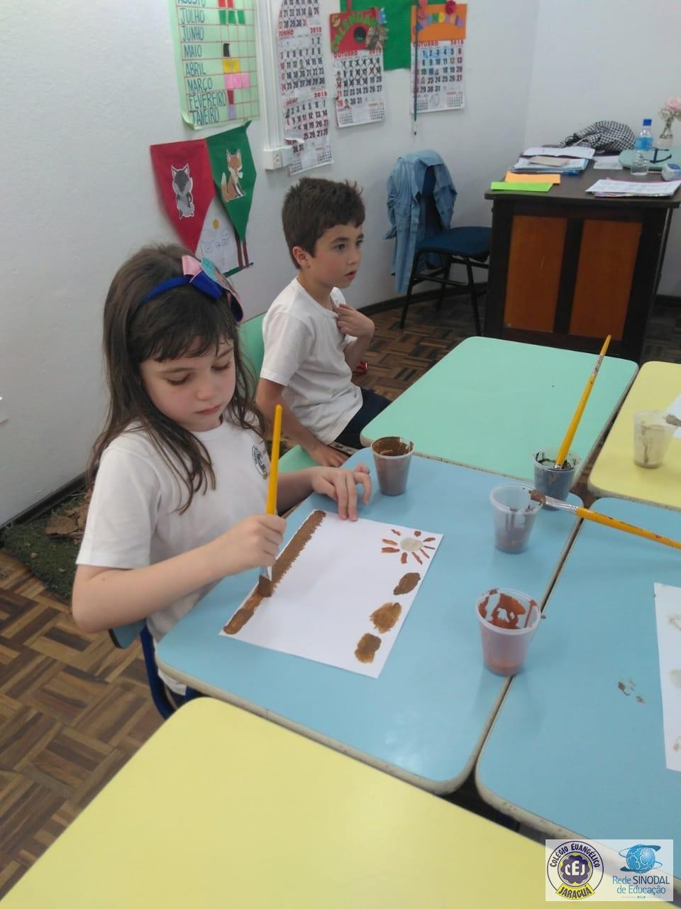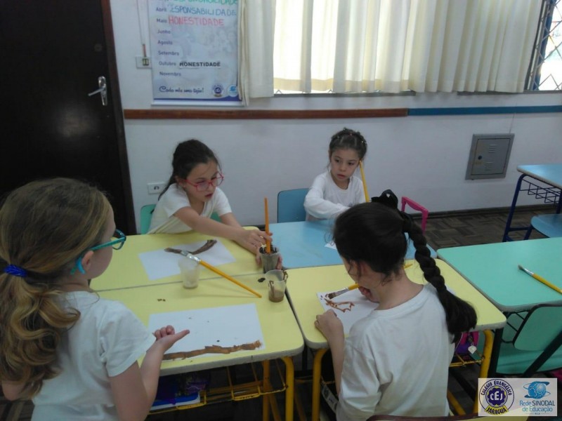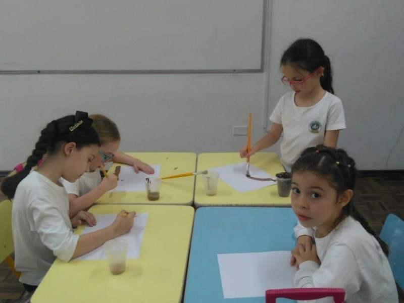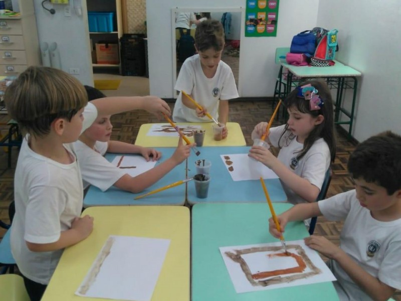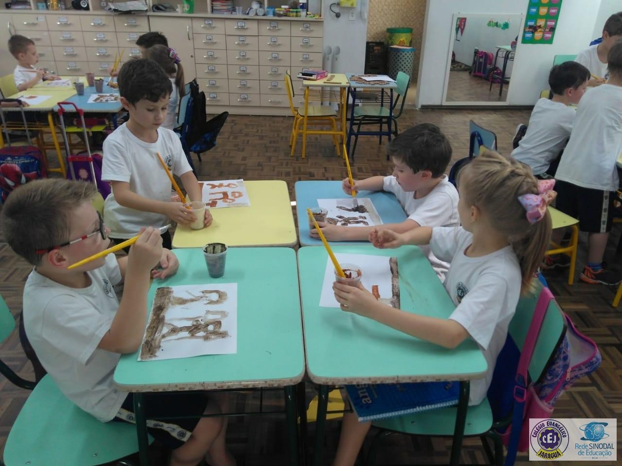 Mais notíciasNo mês de outubro, os alunos do 1° ano B, utilizaram tintas confeccionadas com diferentes tipos de terra para representar através de desenhos a Arte Rupestre.