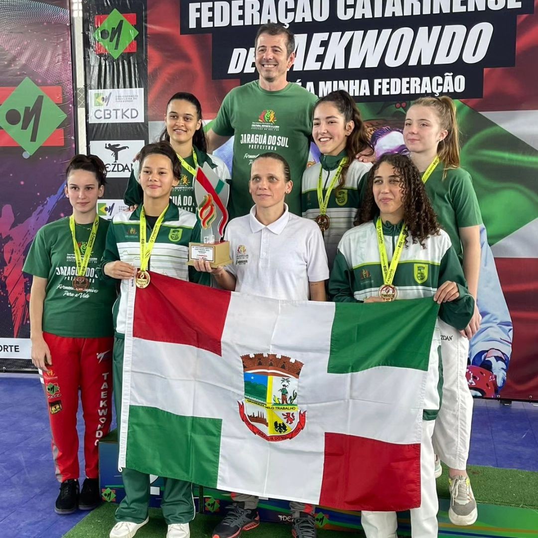 Mais notíciasLuisa conquistou o ouro na categoria -63kg e Isabelle na categoria -59kg. Com esse resultado a equipe feminina de Taekwondo conquistou o título de campeã geral para Jaraguá do Sul.