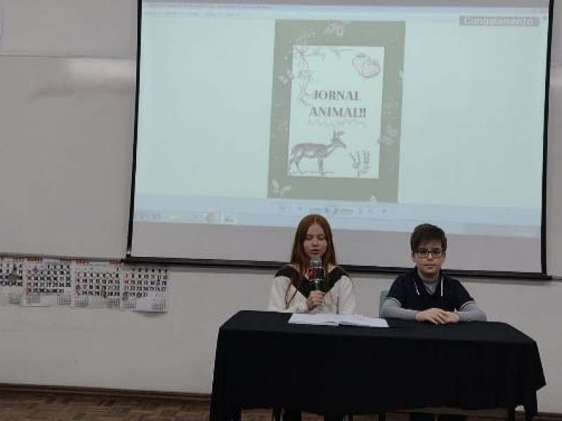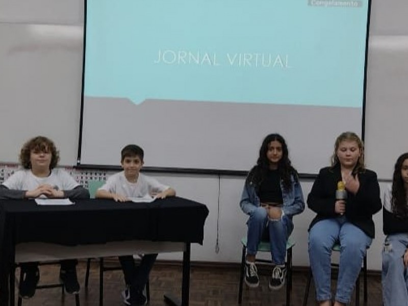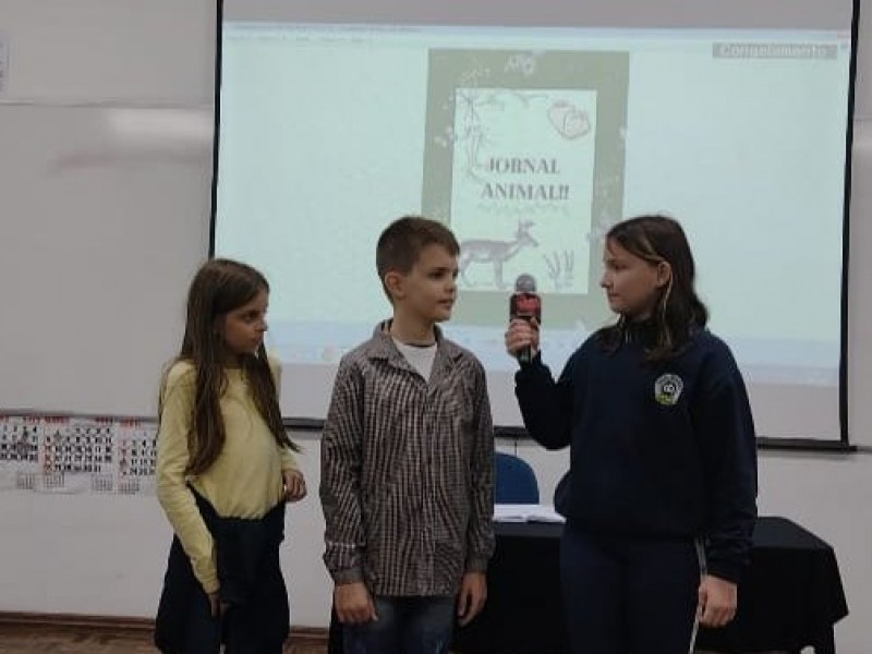 Baseando-se em suas leituras, organizaram o seu próprio jornal televisivo, com direito a nome, música de abertura, jornalistas e repórteres.