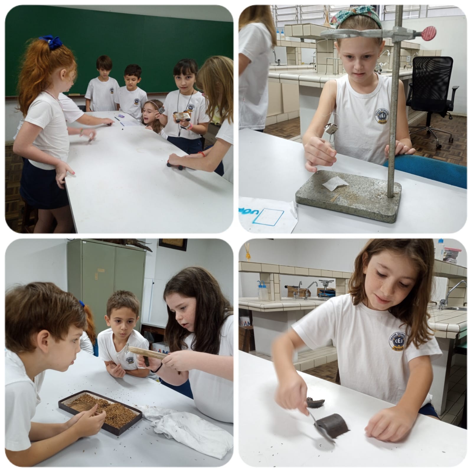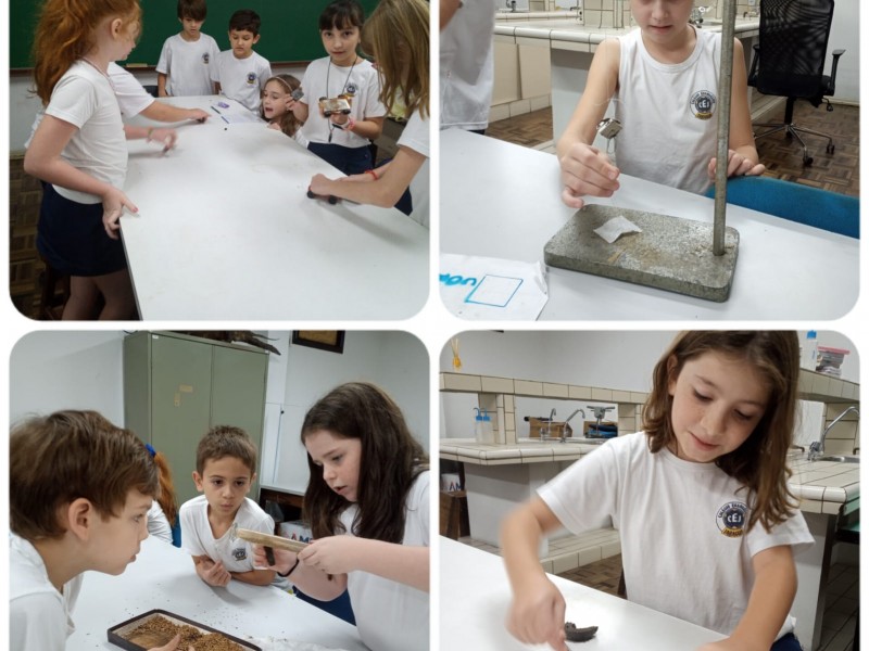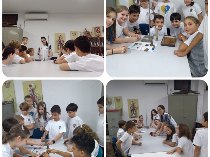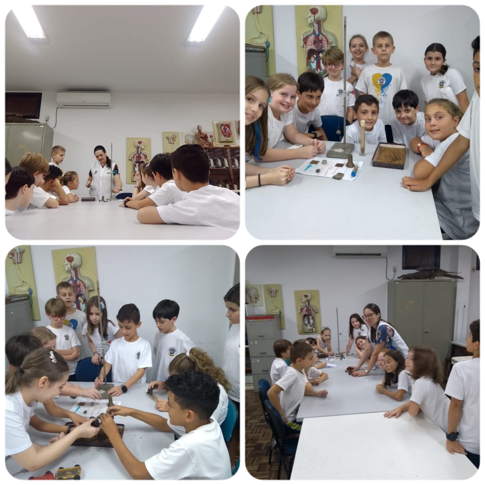 As turmas dos 4°anos, vivenciando experiências no nosso laboratório de Ciências e construindo conhecimentos durante as aulas.