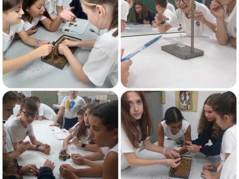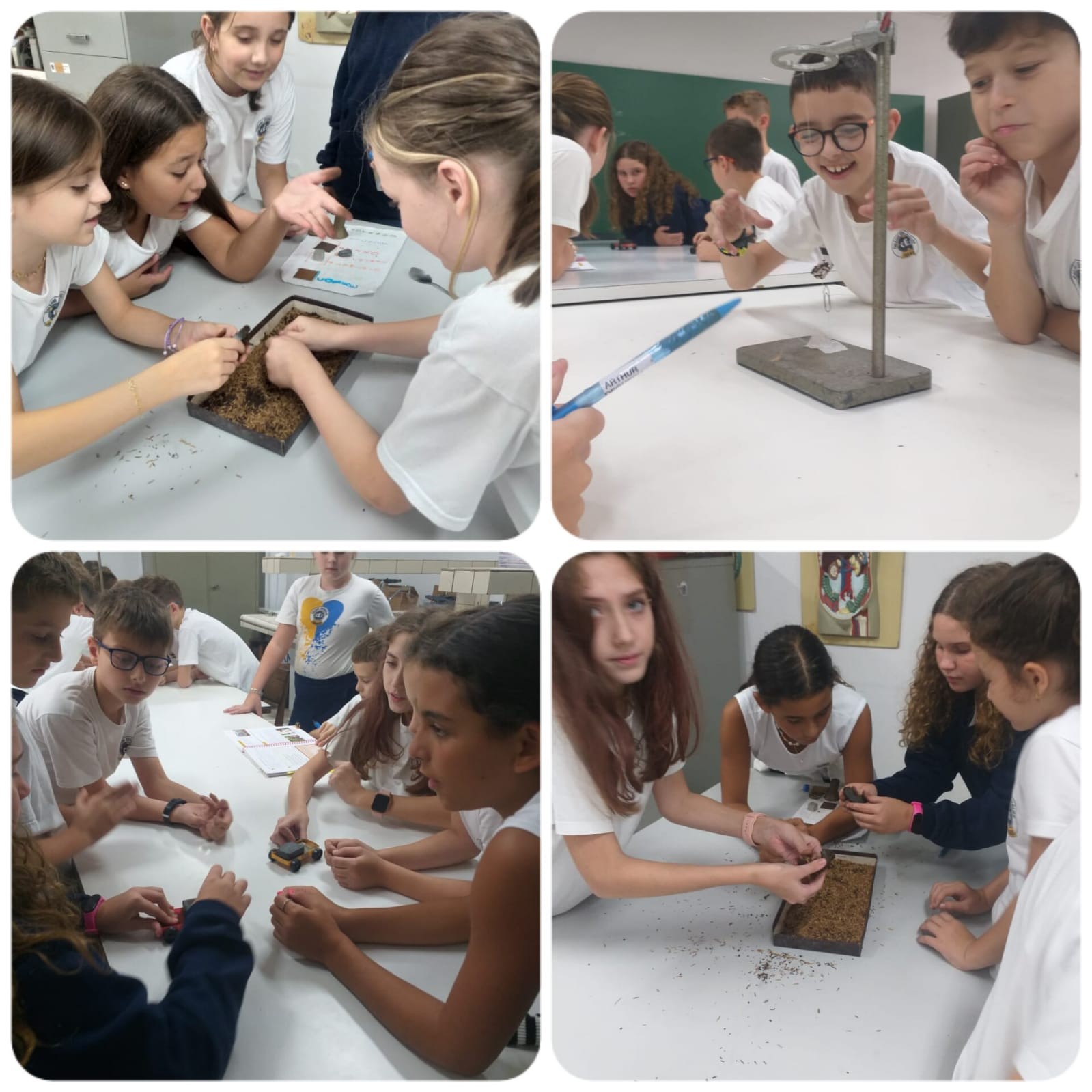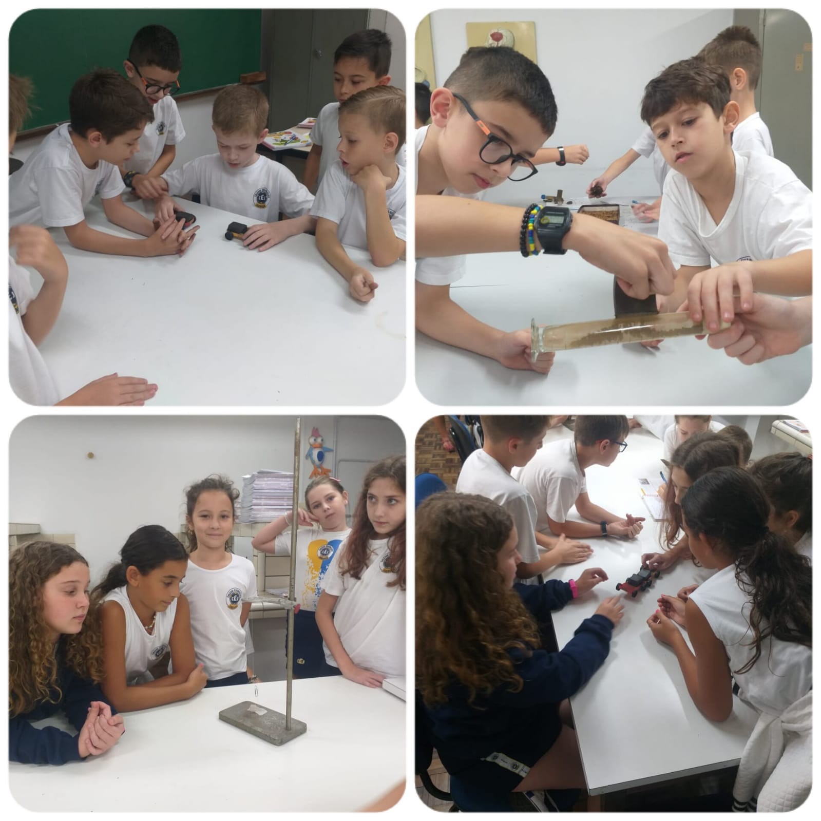 As turmas dos 4°anos, vivenciando experiências no nosso laboratório de Ciências e construindo conhecimentos durante as aulas.