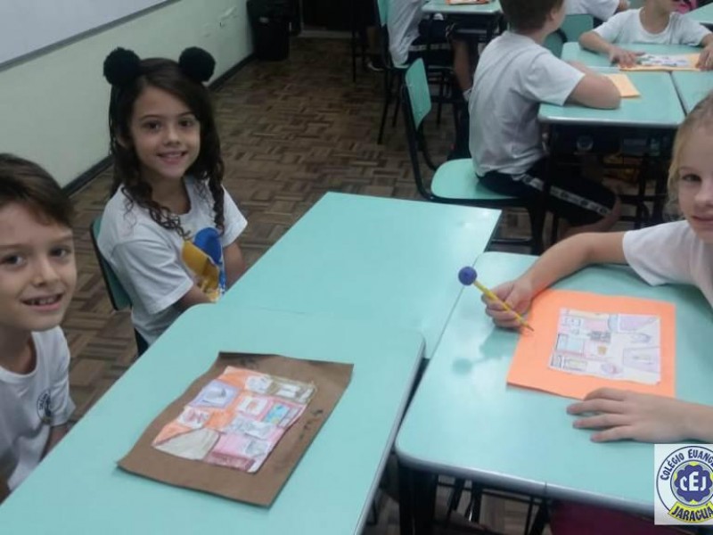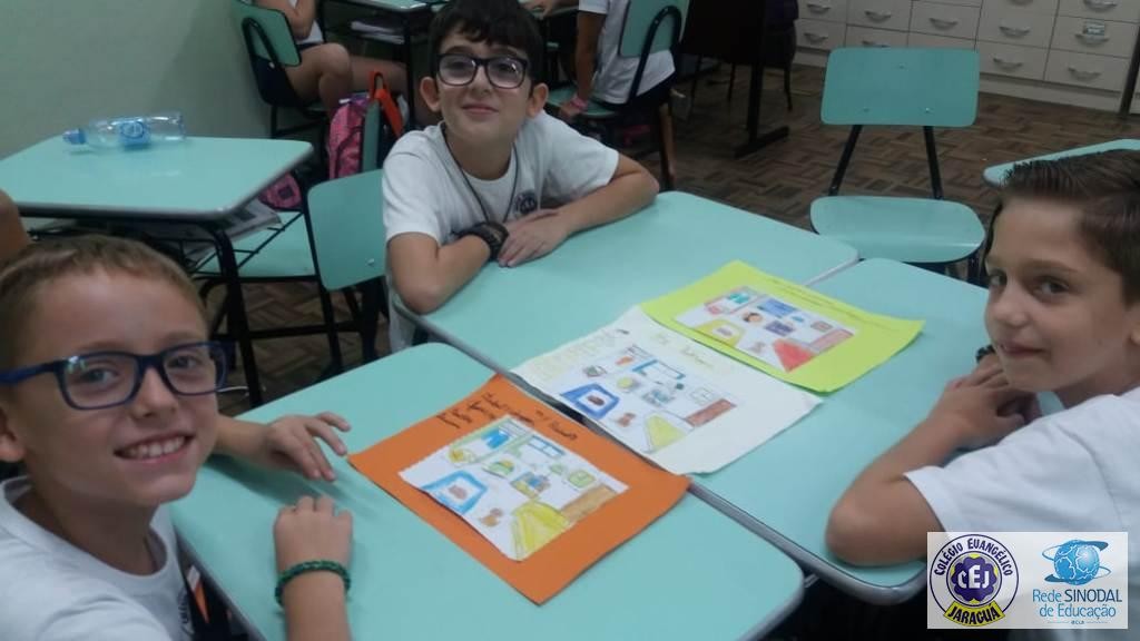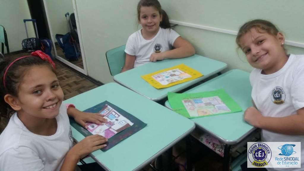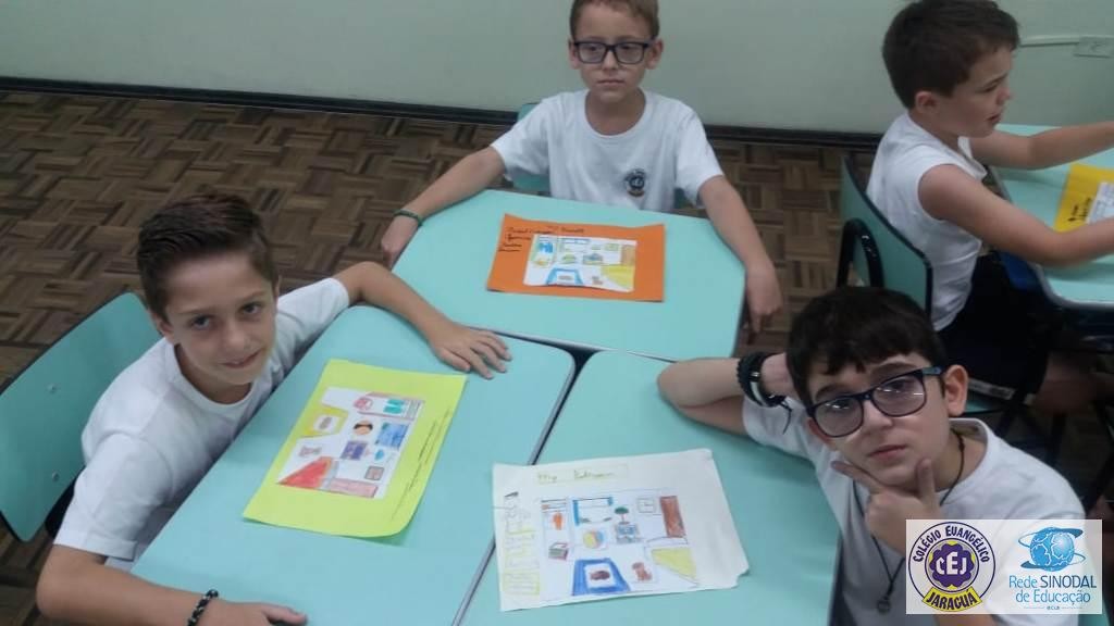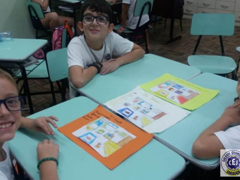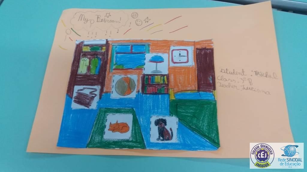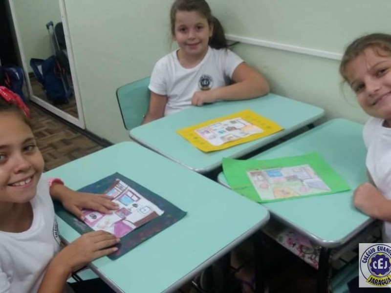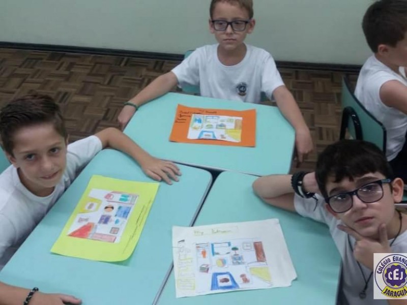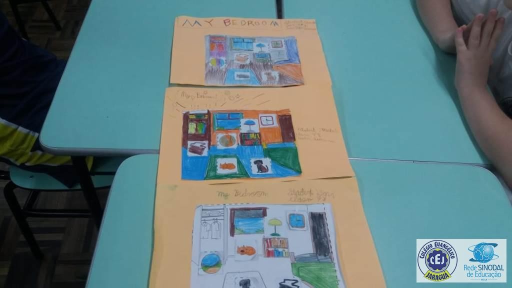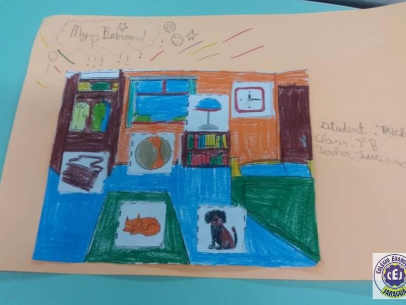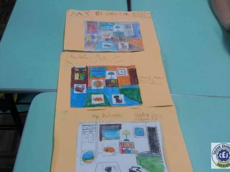 Mais notíciasOs alunos do 3º ano B estão estudando “make your bedroom”, onde cada aluno recebe a worksheet para organização e montagem de um quarto. Os alunos recortam e pintam os objetos e em seguida colam em uma folha de papel para criar o quarto, posicionando os objetos corretamente em relação ao outro item, pois terão de descrever onde estão localizados. Para finalizar, em duplas, os alunos apresentam o trabalho para seus colegas, utilizando as estruturas gramaticais apresentadas . Com essa atividade aprendem a se comunicar e expressar corretamente as palavras em inglês de forma criativa.