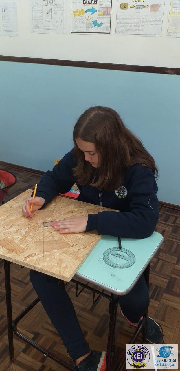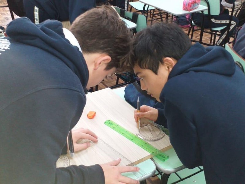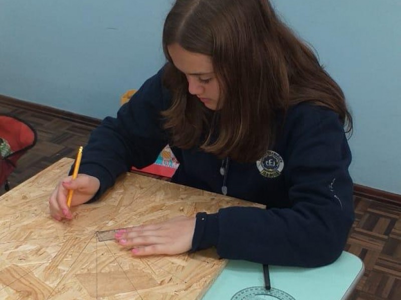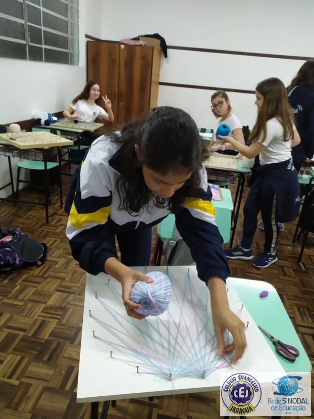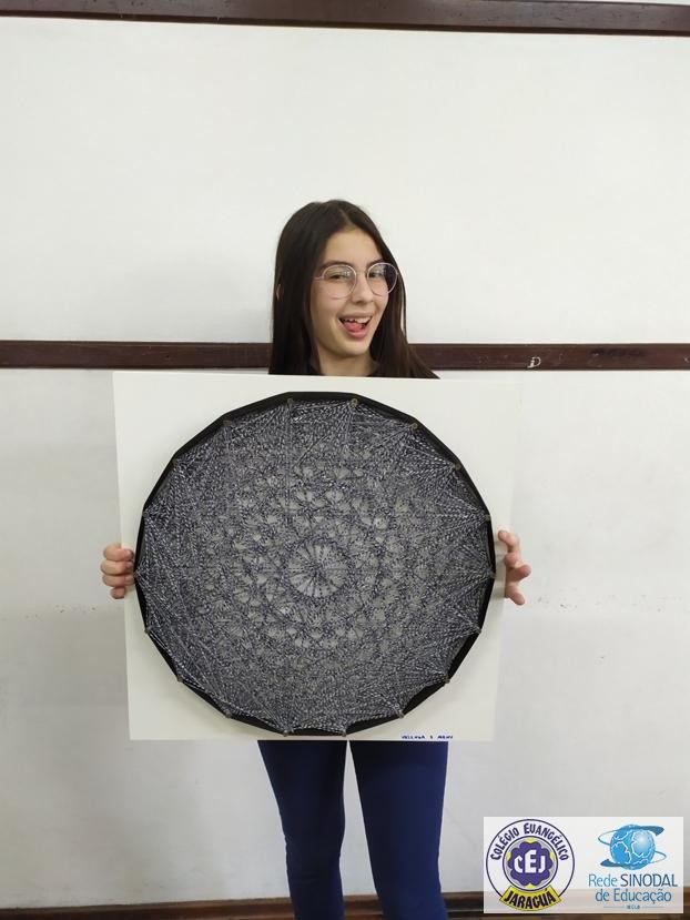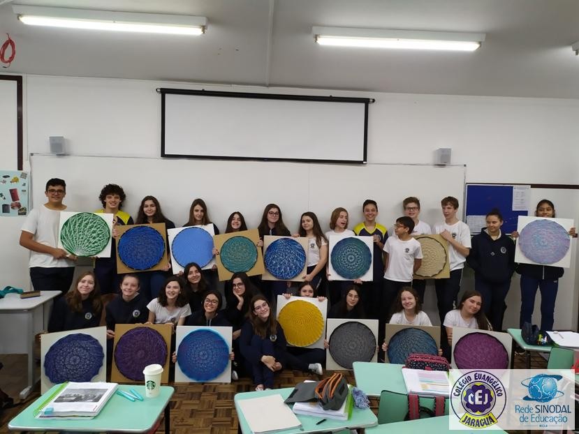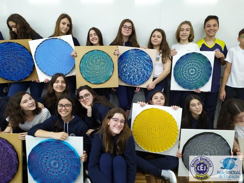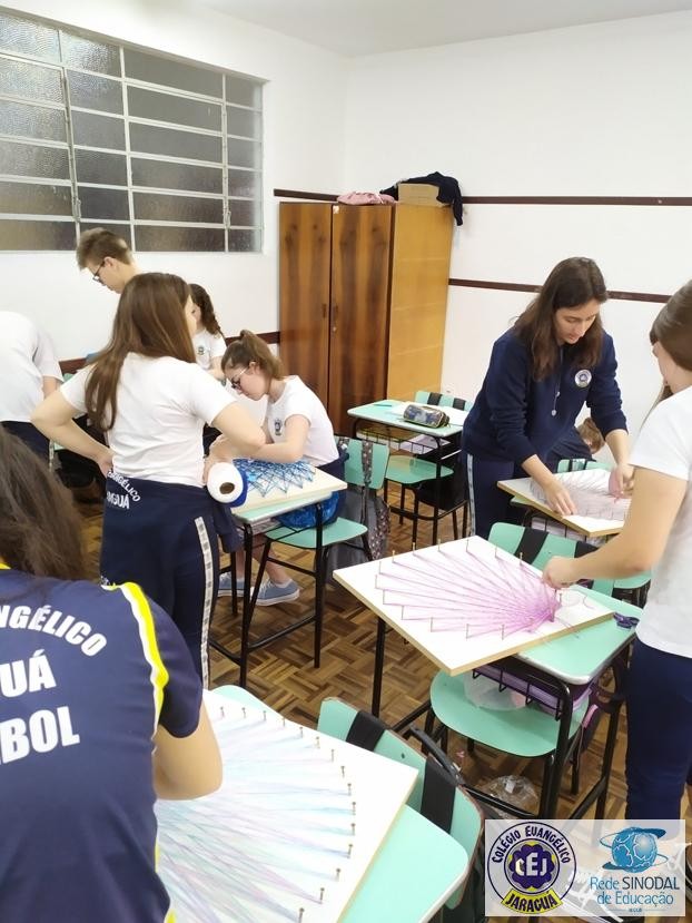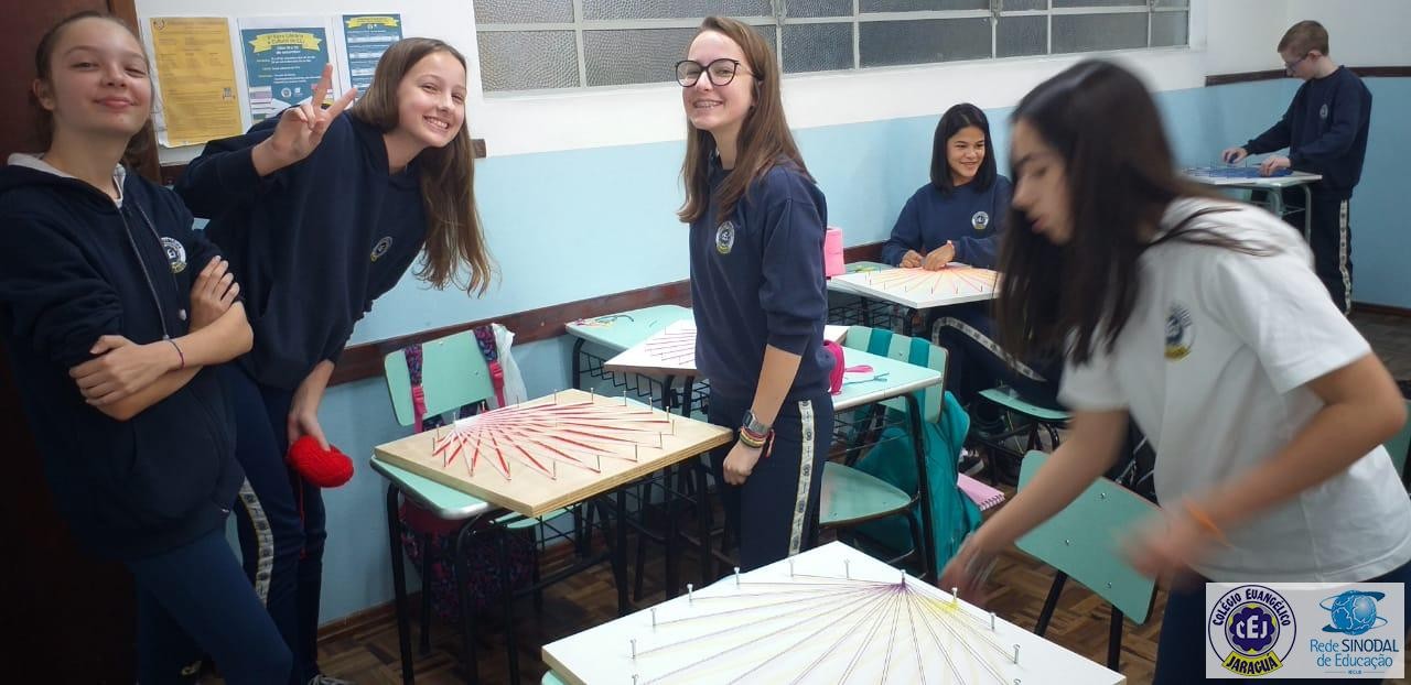 Mais notíciasNo mês de setembro nas aulas de Matemática, os alunos do 8º A e B realizaram o trabalho dos polígonos , utilizando uma tábua 50cm x 50cm, pregos ou parafusos e também fios coloridos. O objetivo foi desenvolver maiores habilidades do uso do transferidor e régua, bem como traçar as diagonais com fios coloridos formando um desenho geométrico.