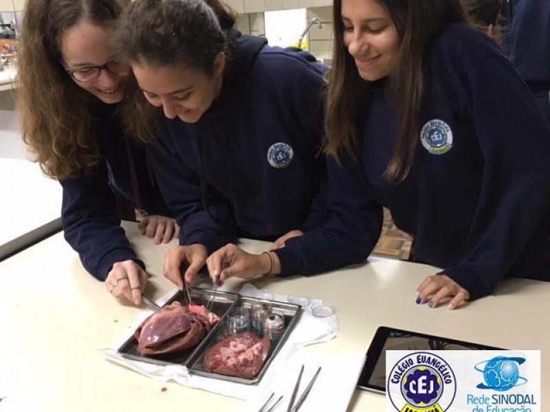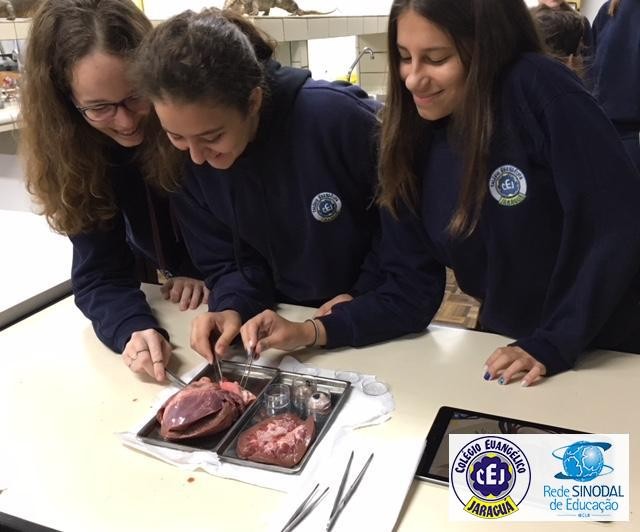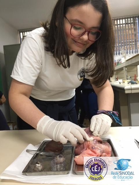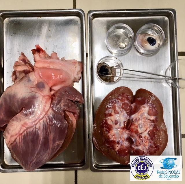 Mais notíciasAlunos dos 8ºanos observaram a anatomia de coração, rim e olho de suíno.