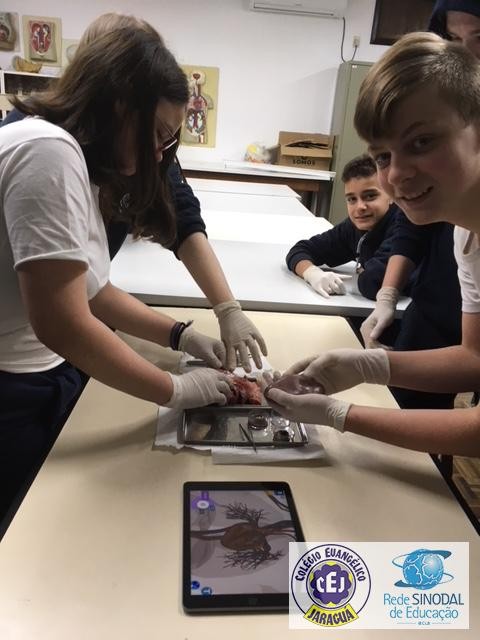 Com o auxílio de iPad observaram animados a fisiologia do coração, quando este contraía ou relaxava e o movimento de válvula. Compararam e nomearam as estruturas internas.