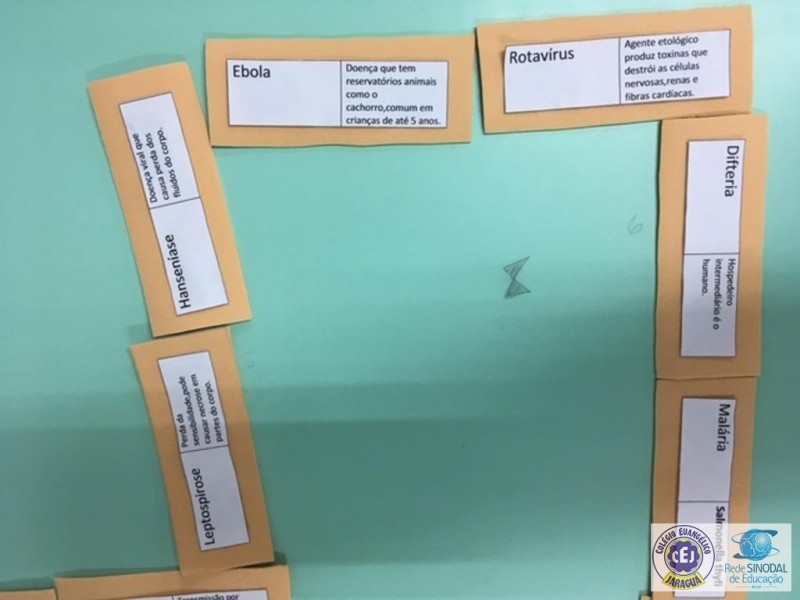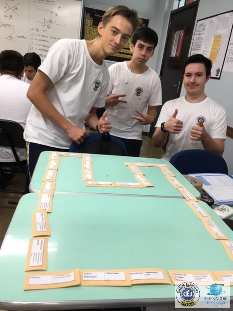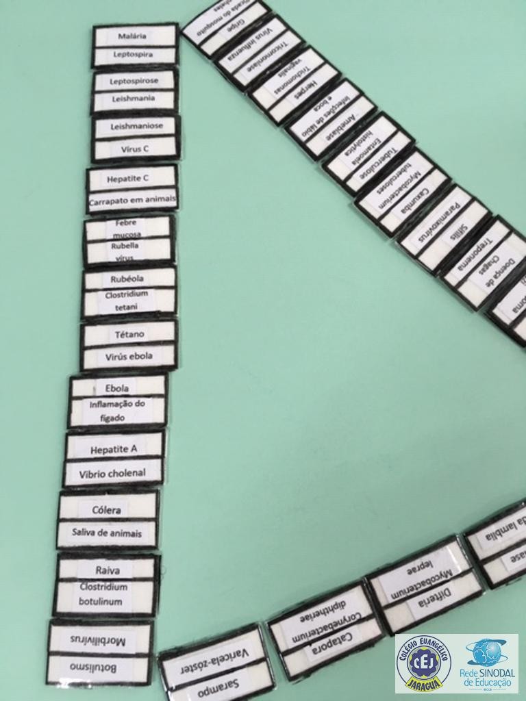 Mais notíciasAlunos do Terceirão com muita habilidade, criatividade e sobretudo lidando com conteúdos sobre doenças caudadas por vírus, bactérias e protozoários produziram um dominó de conceitos.