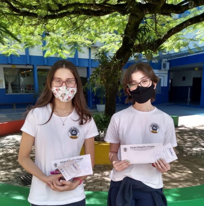 As alunas Caroline Ritter, do 1º ano do Ensino Médio e Raíssa Eduarda Uller, do 2º ano do Ensino Médio, foram as contempladas do Colégio Jaraguá nesta edição do JUKU.