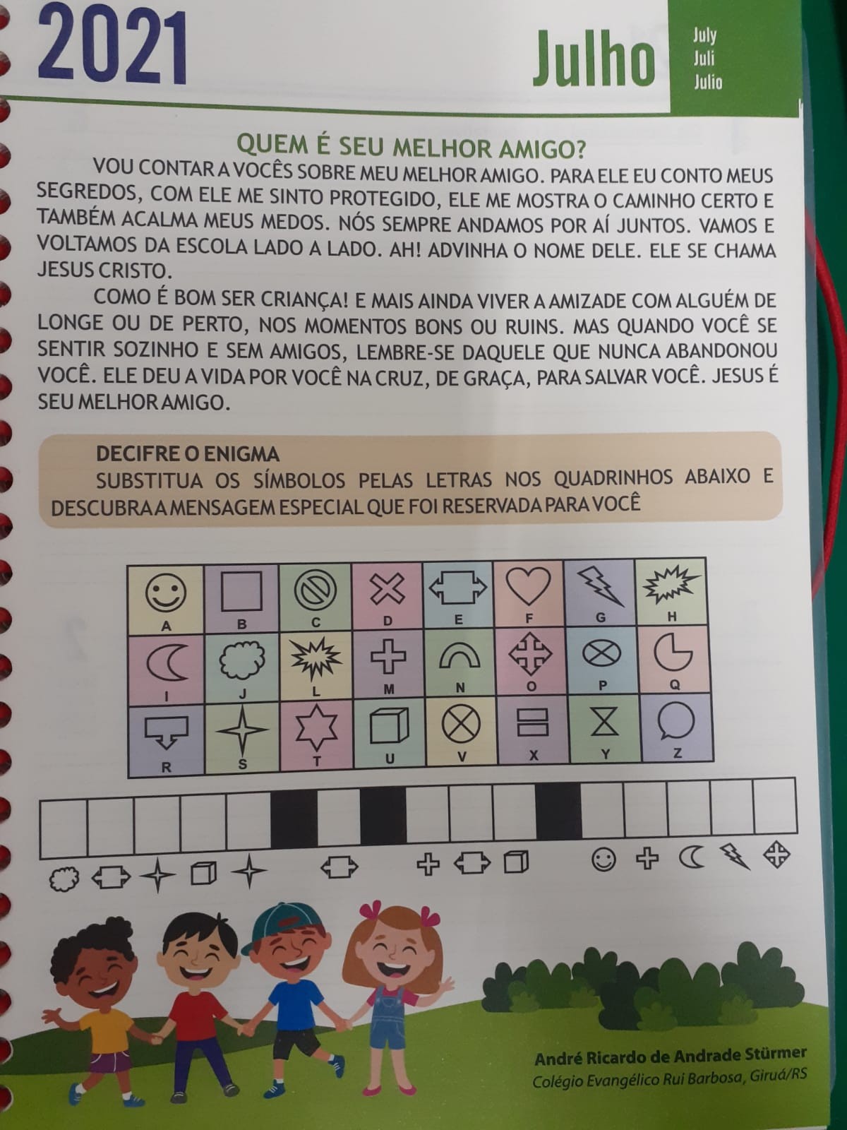 Mais notíciasNo dia 20 de julho comemoramos o dia internacional do (a) amigo(a) e da amizade, e foi sobre esta importante data que no retorno do Recesso escolar a turma do Infantil II trabalhou na aula de Ensino Religioso.