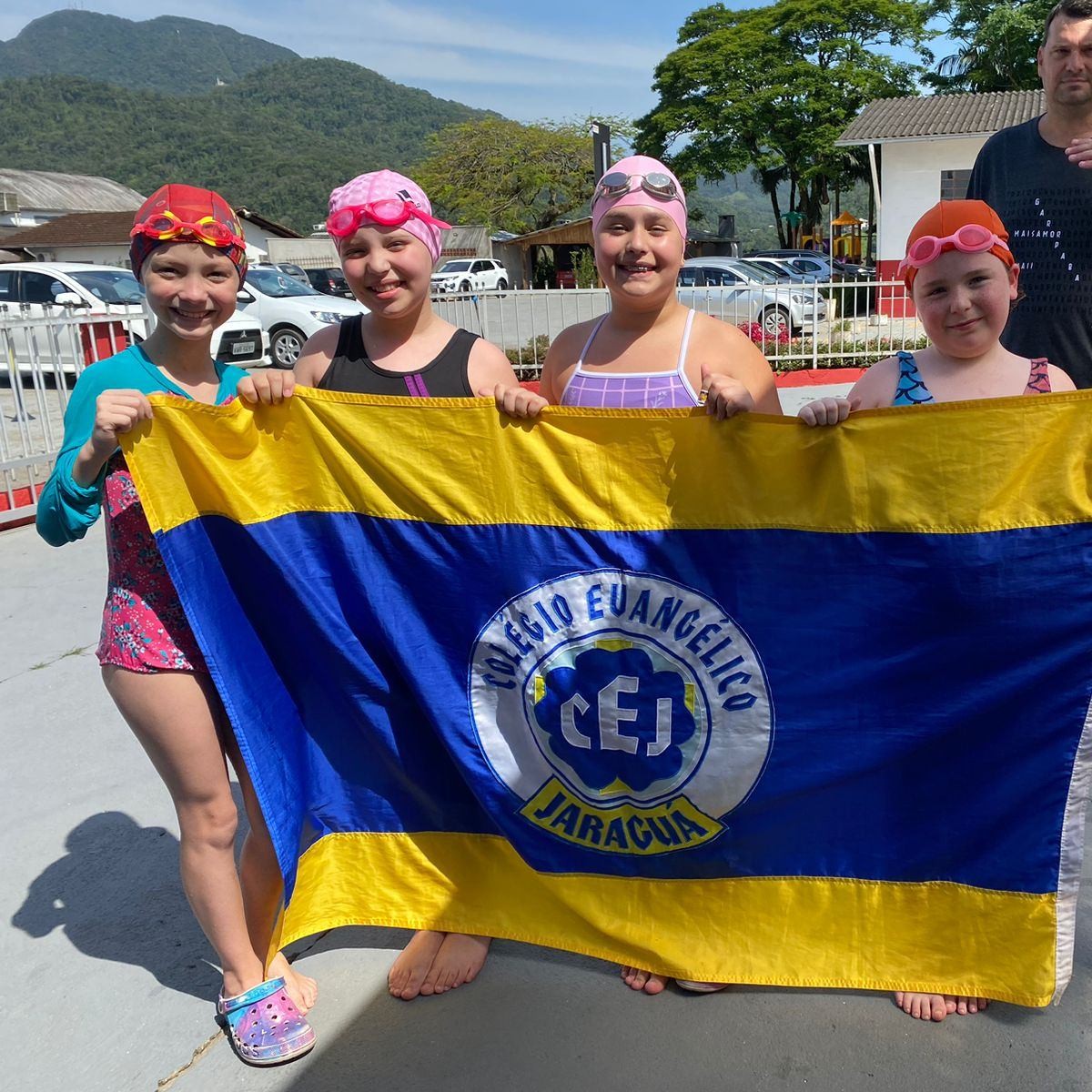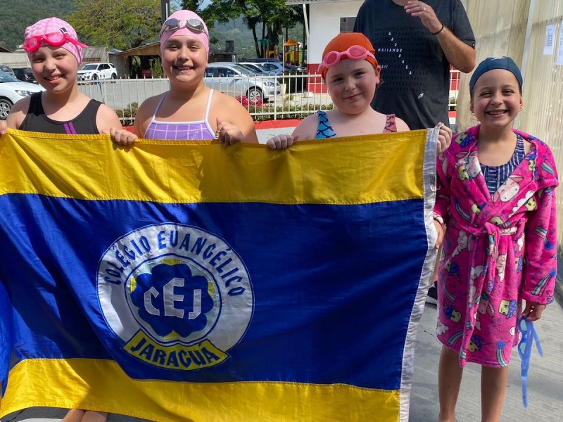 Mais notíciasNo dia 08 de novembro, o Colégio Evangélico Jaraguá participou do Campeonato Aberto de Natação - 24º Troféu Ernani Volpi Coutinho, na Sociedade Esportiva Acaraí.