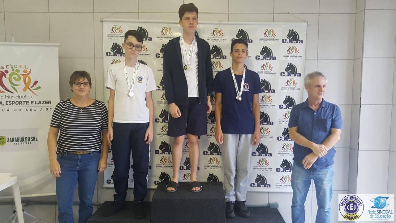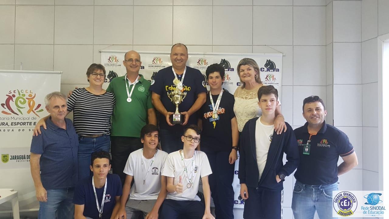 Mais notíciasColégio Evangélico Jaraguá participou no dia 24 de abril na Arena Jaraguá da fase municipal do JESC de 15 a 17 anos na modalidade de xadrez masculino e feminino, e conquistou o título geral nos dois naipes.