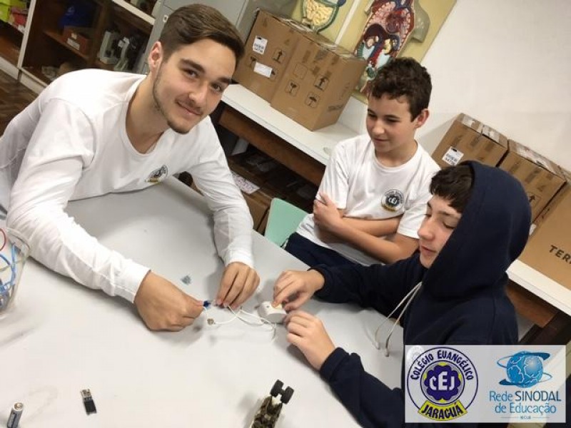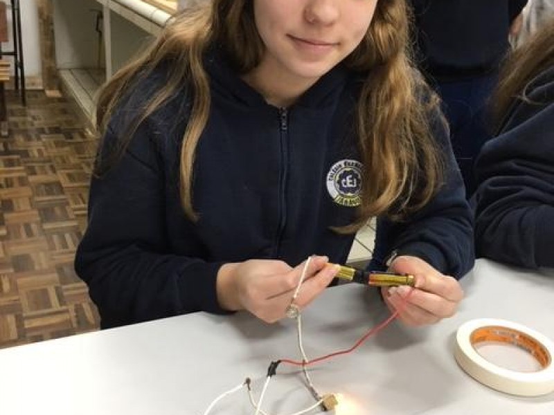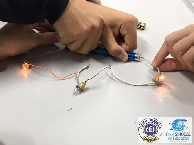 Mais notíciasAula prática de Ciências com os alunos dos 9ºs anos sob orientação do prof Marcelo para estudo de circuitos em série, paralelo e misto.