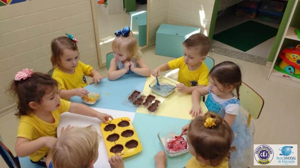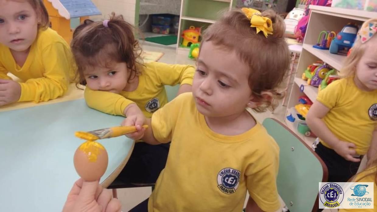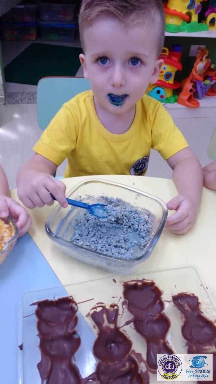 Mais notíciasColorir ovos, chocolate e biscoitos, foram as propostas pedagógicas do Infantil II durante os últimos dias. Identificar e nomear as cores se tornou interessante quando envolveu as tradições da festa da Páscoa. Foi uma delícia assar biscoitos e colorir com glacê das mais diversas cores e depois degustar com os colegas!