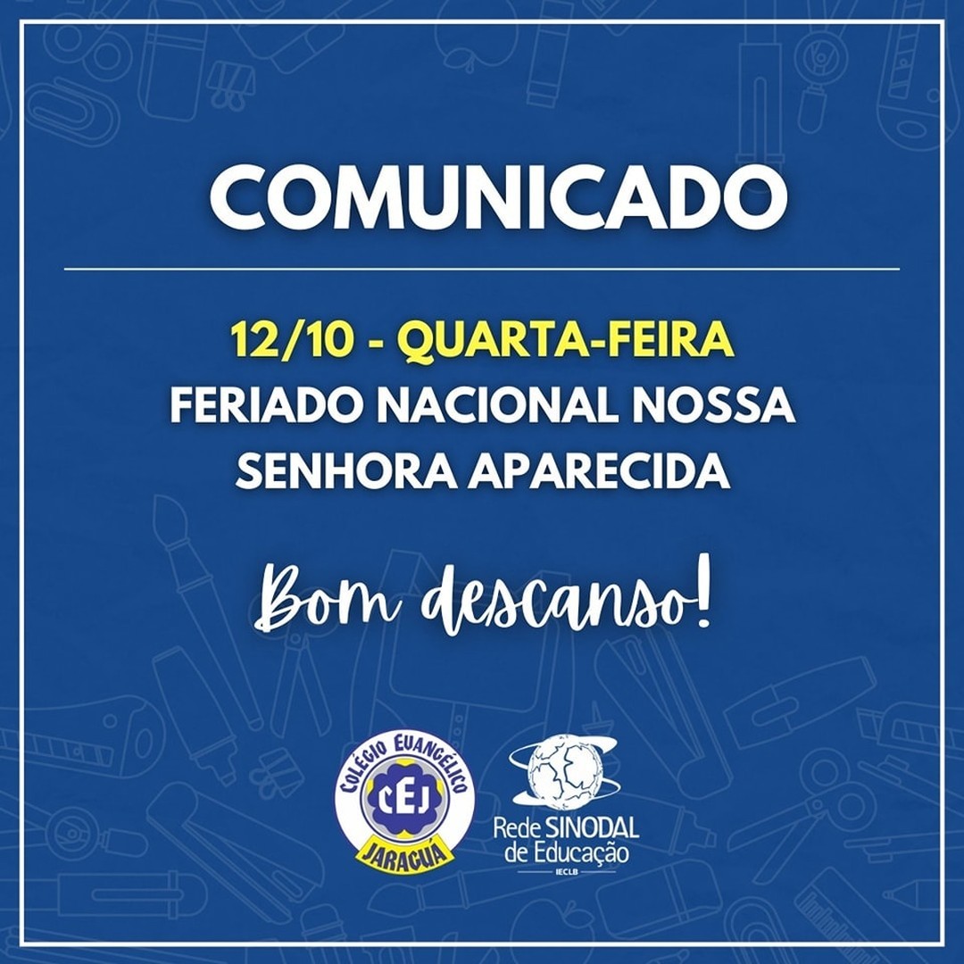 COMUNICADO 12/10 Quarta-feira FERIADO NACIONAL
