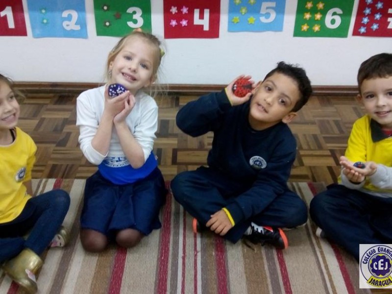 Mais notíciasOs alunos do Infantil IV, conheceram a letra J de joaninha. Realizaram uma pesquisa sobre as diferentes cores deste inseto e a confeccionaram em pedras. Confira os registros dessa atividade.