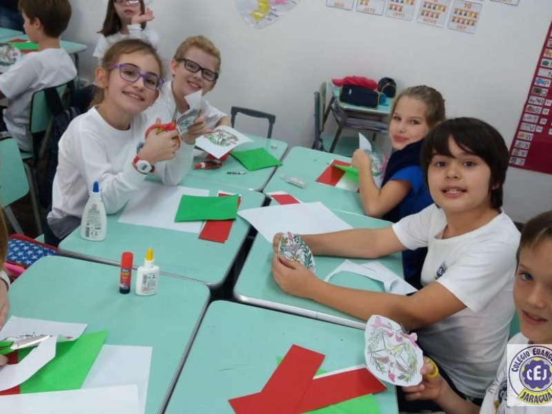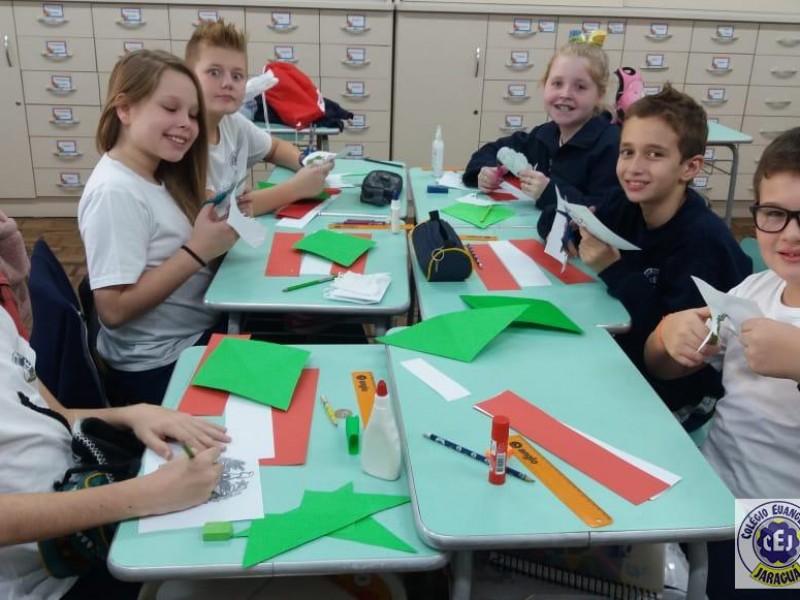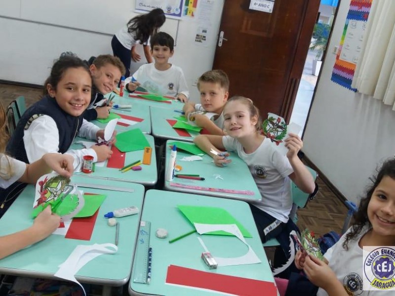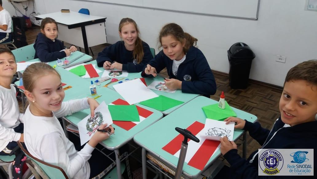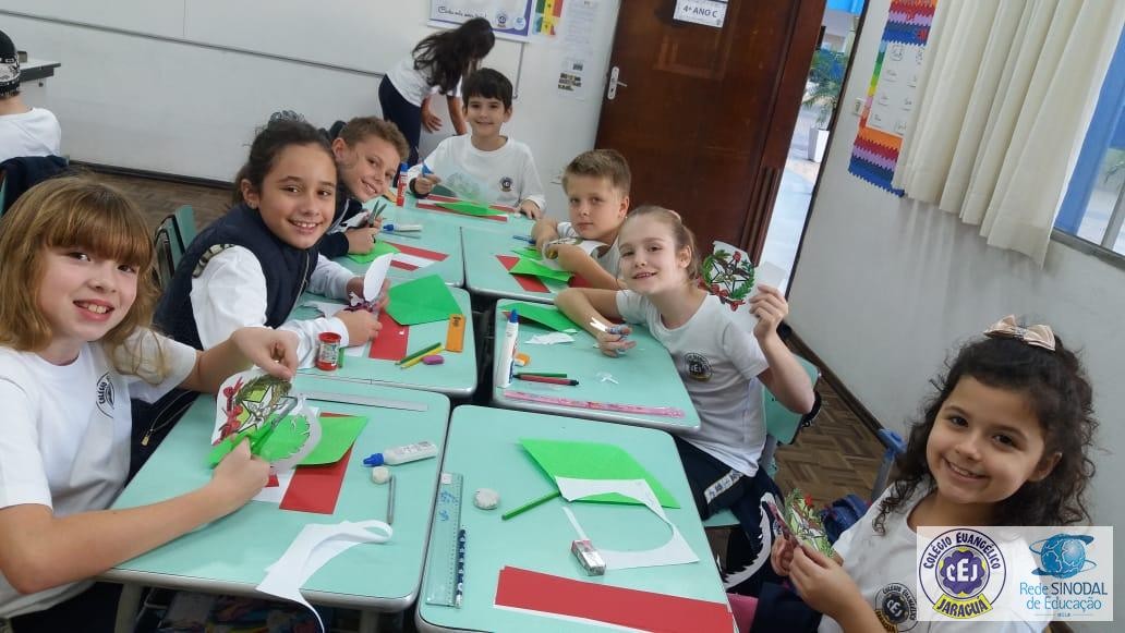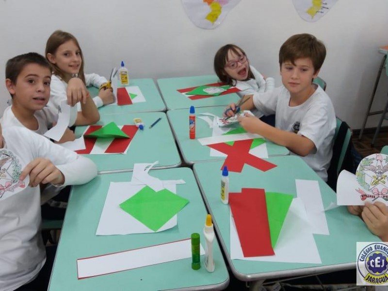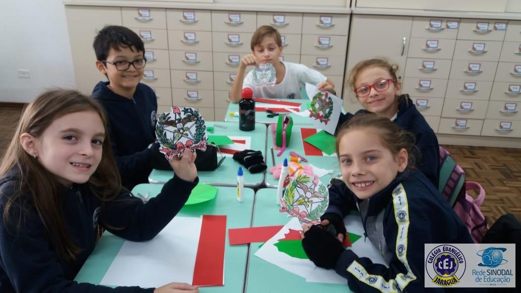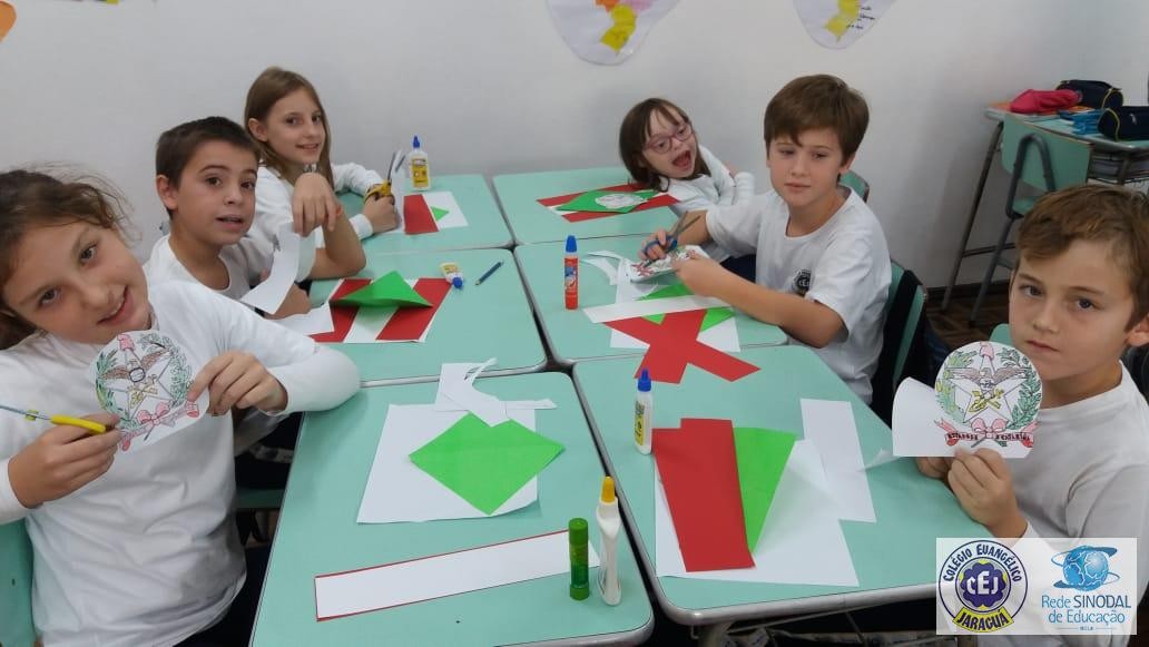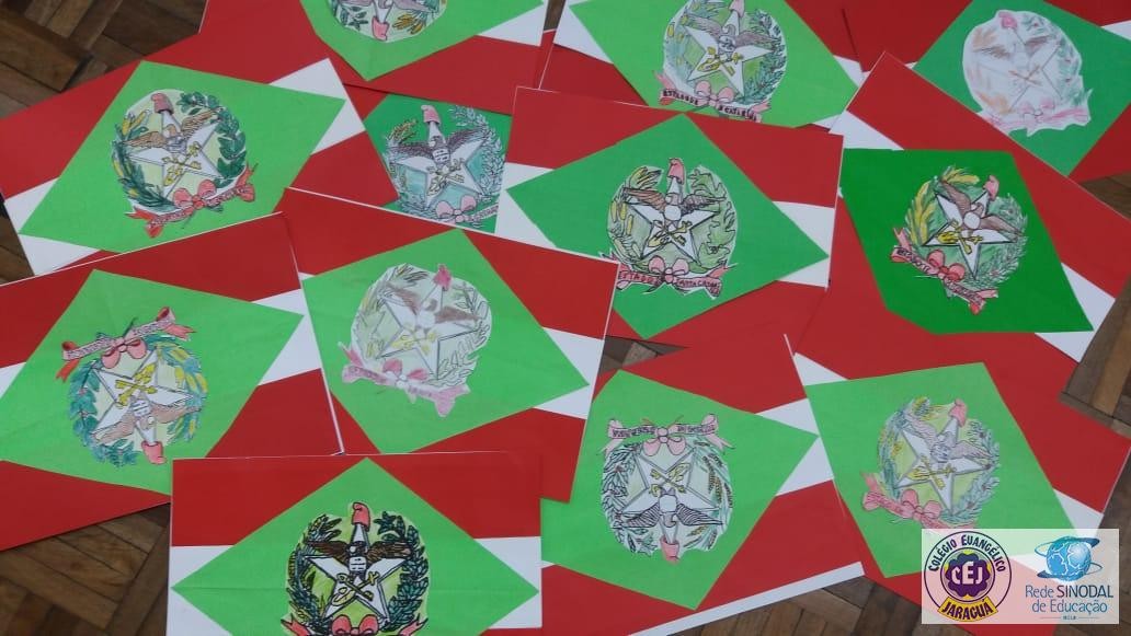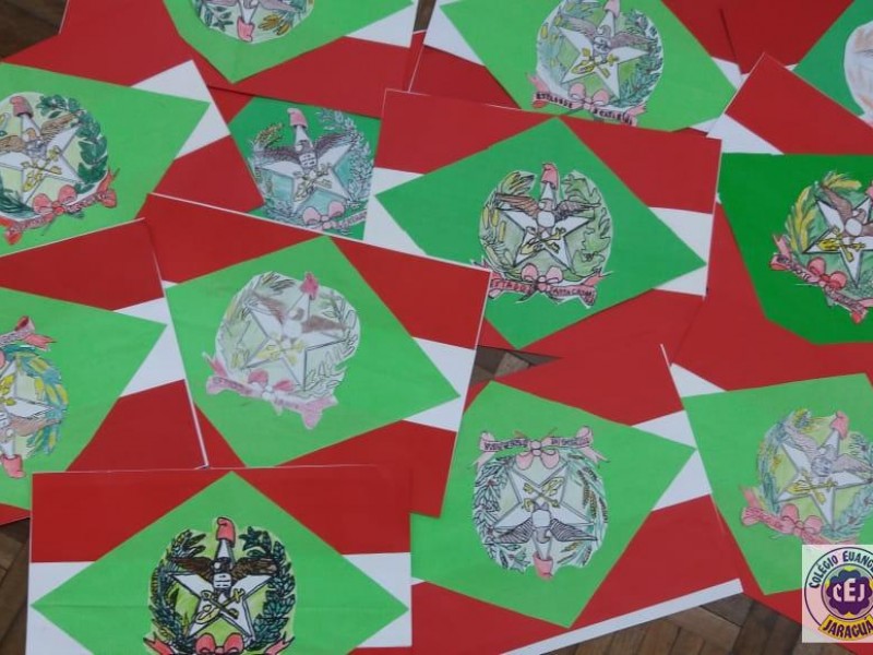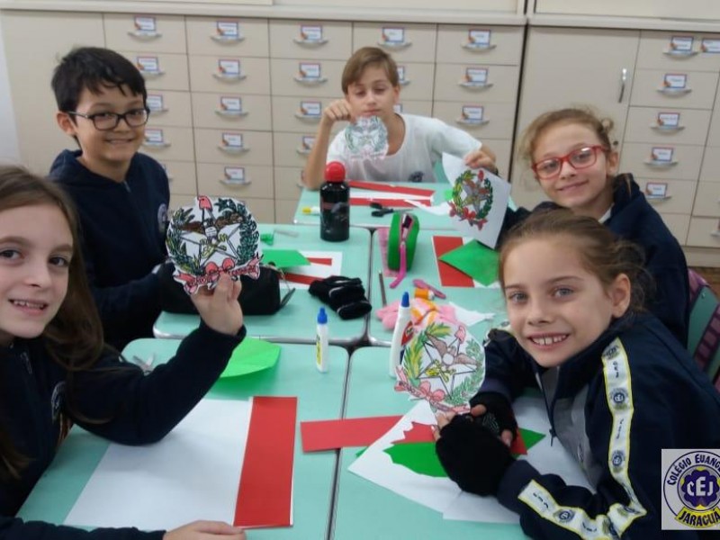 Mais notíciasNo primeiro bimestre os alunos dos 4ºs anos da professora Suzana Rosá estudaram sobre Santa Catarina. Uma das atividades foi a confecção da bandeira do Estado, com recorte e colagem utilizando papéis coloridos. O objetivo da atividade foi conhecer o significado das cores e do brasão que compõem a bandeira. No dia 19 de novembro comemoramos Dia da Bandeira!