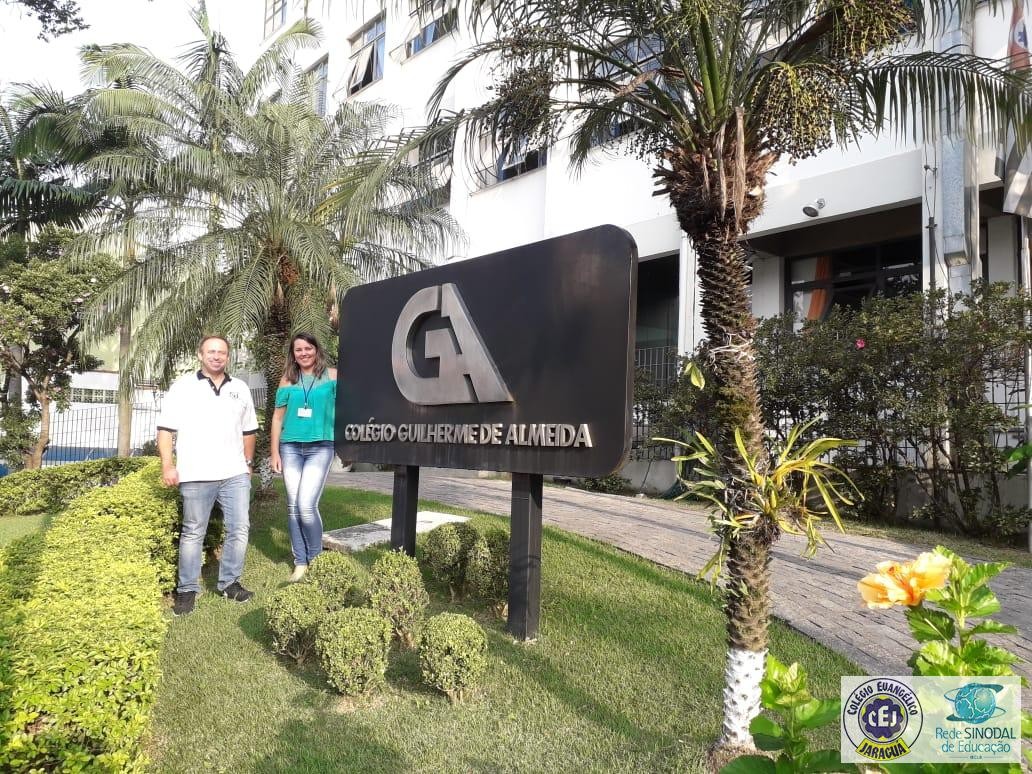 Mais notíciasAproveitando a viagem de participação na Bett Educar, a Coordenadora Pedagógica Geral do Colégio, professora Margareth Ripp, agendou visita ao Colégio Guilherme de Almeida em Guarulhos. O Colégio também é parceiro do ANGLO Sistema de Ensino. A professora Margareth foi recebida pelo professor Fábio Áviles, que presta assessoria para os professores do CEJ , atuando como palestrante em diversos momentos de formação. O objetivo da visita foi conhecer a organização de outra escola no que diz respeito à parte pedagógica, realizando também uma interessante troca de experiências entre as instituições de ensino. A visita foi realizada no dia 13 de maio.