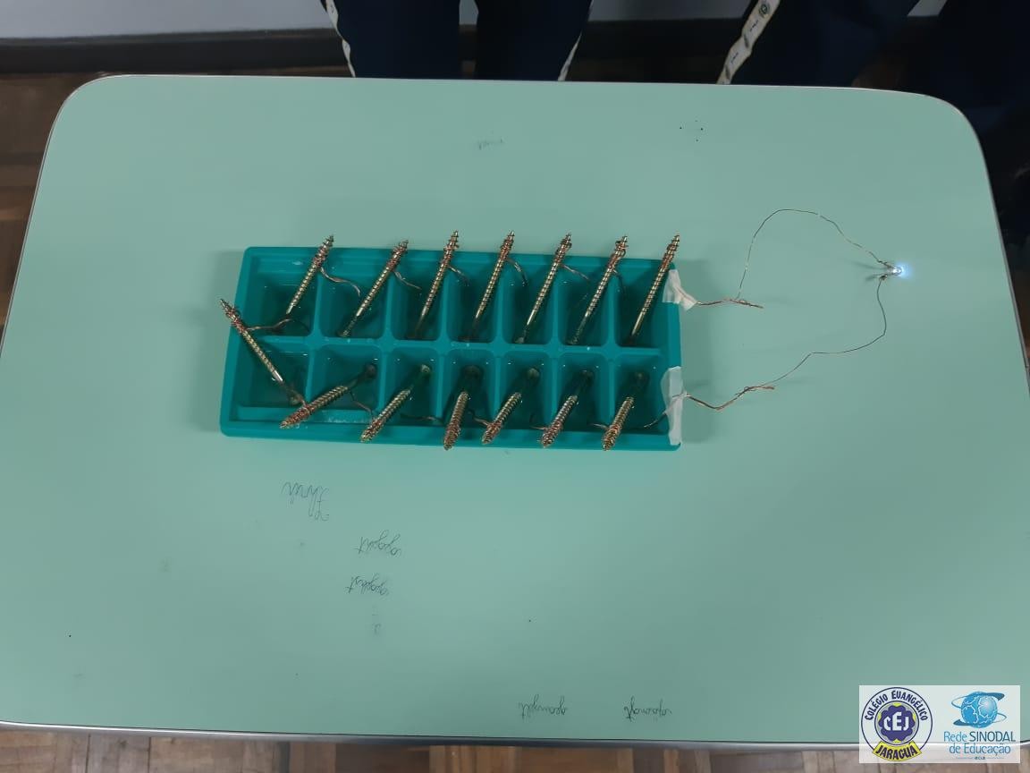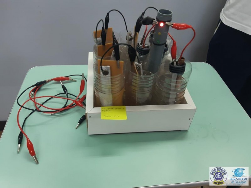 Mais notíciasNas aulas de Química os alunos dos 2ºs anos do ensino médio, demonstraram sua criatividade na construção de pilhas com materiais de uso comum. Foram utilizados pregos, moedas, papel alumínio, água sanitária, vinagre para geração de energia.