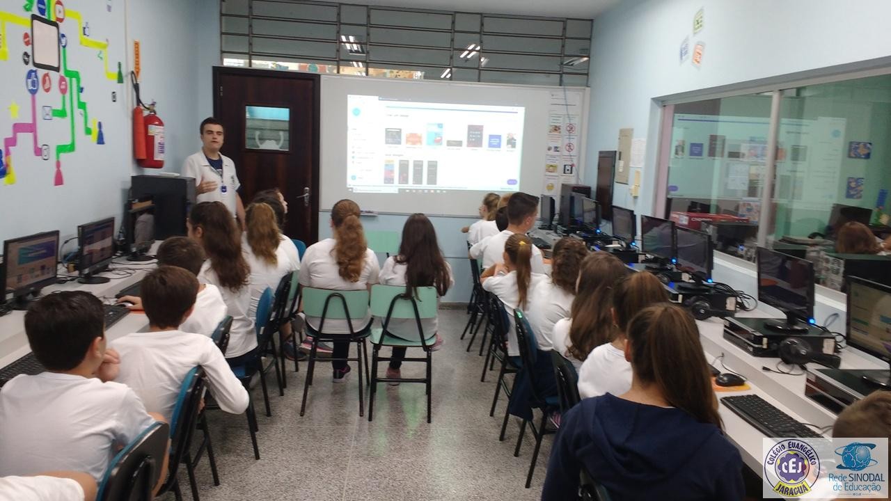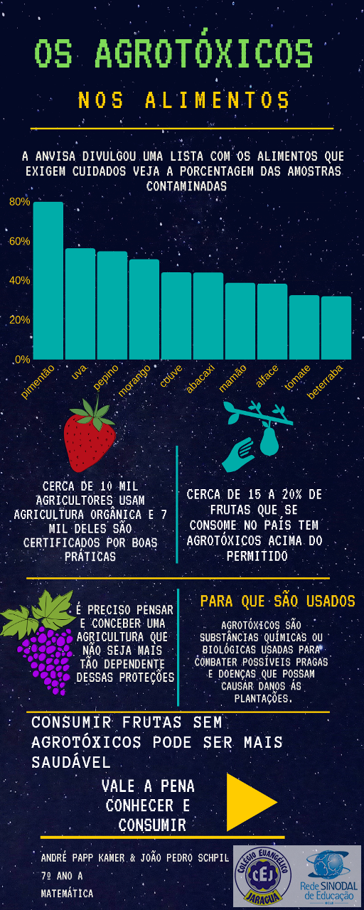 Mais notíciasNos dias 13 e 14 de fevereiro de 2019, nas aulas de Matemática, os alunos do 7ºA foram ao Laboratório de Informática juntamente com a profª Wânia para receberem orientações do profº Renan sobre o site do Canva. Através deste site, os alunos confeccionaram os Infográficos com base no tema: Os agrotóxicos nos alimentos.