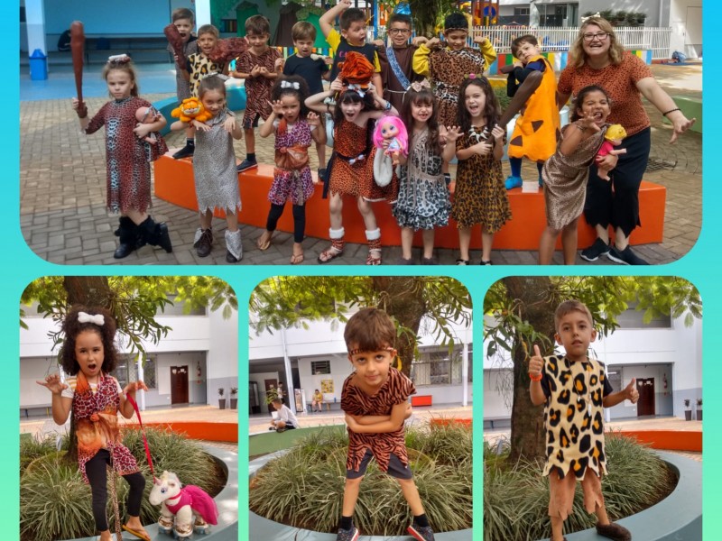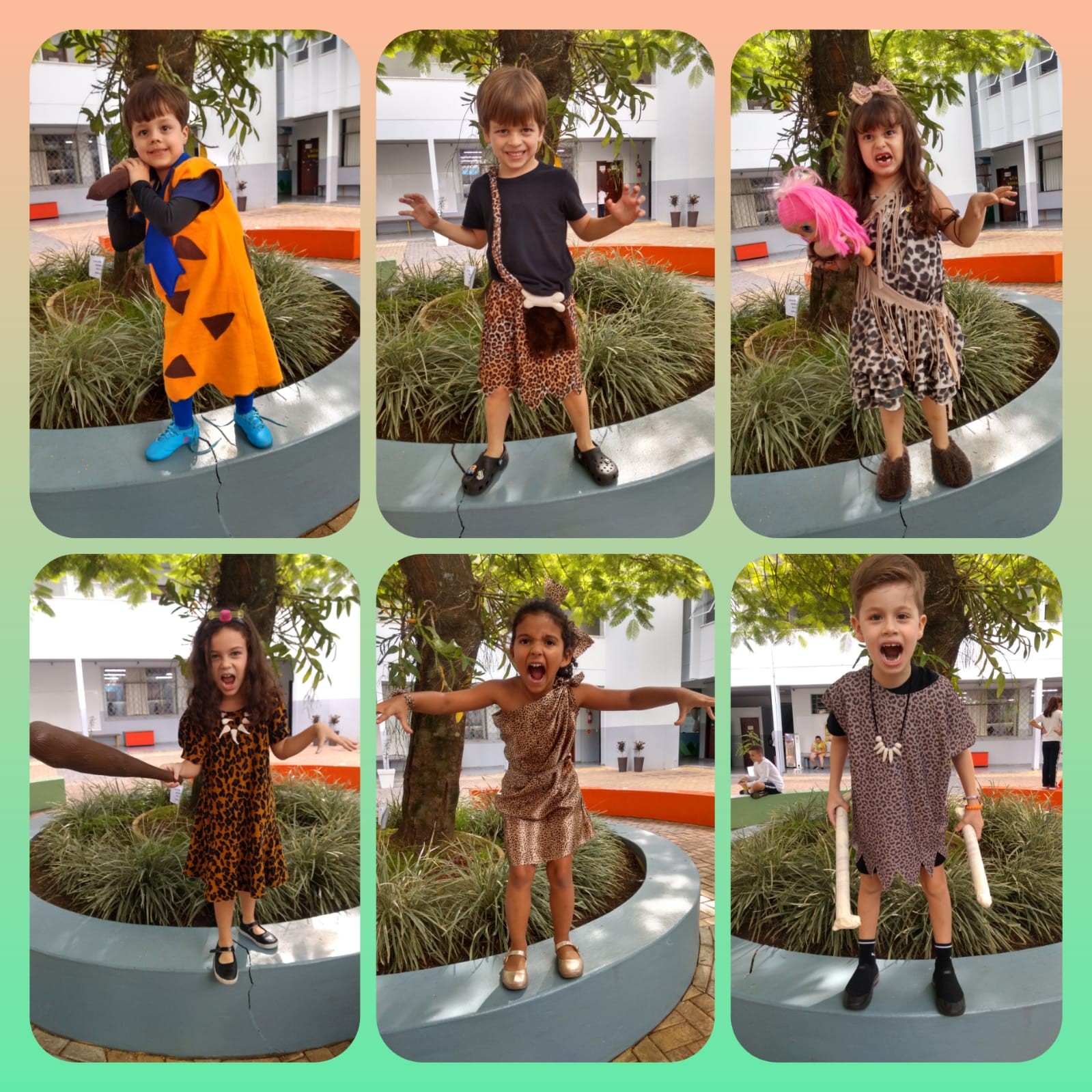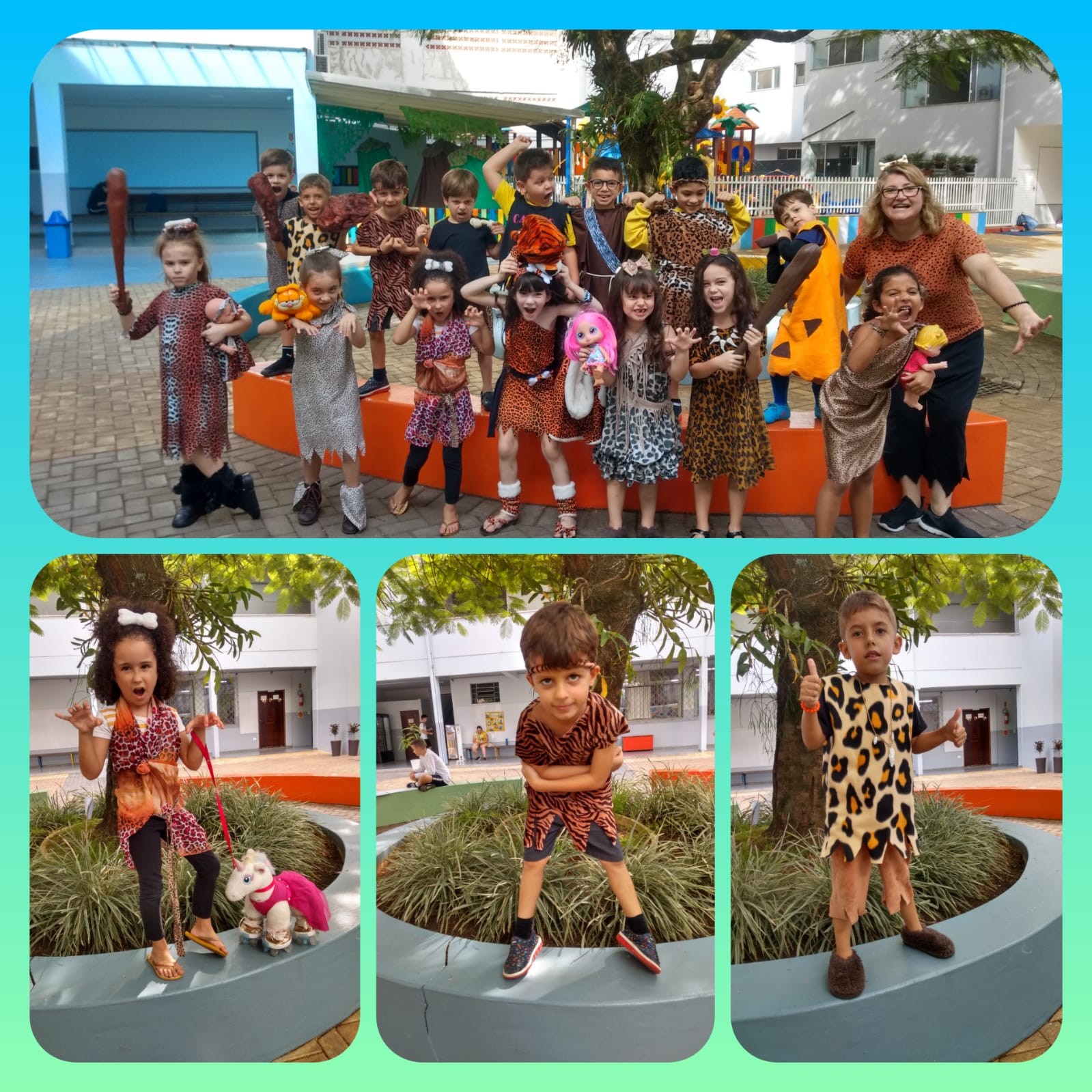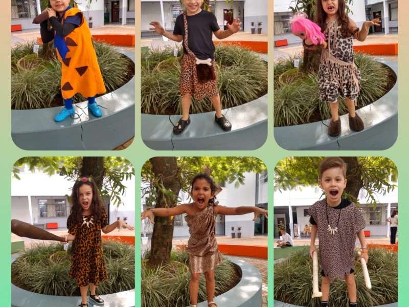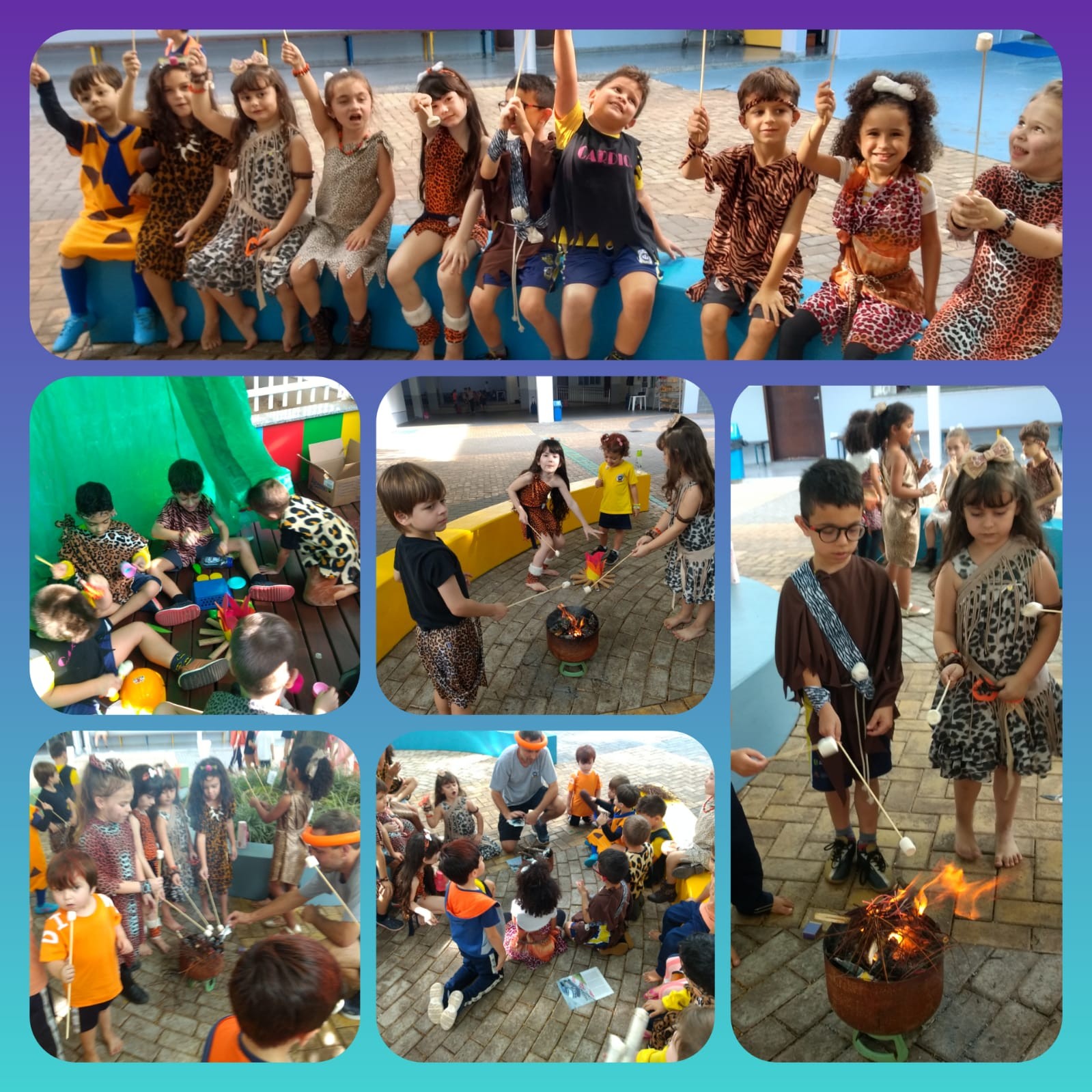 As crianças vestiram-se como “crianças das cavernas” e vivenciaram a organização de suas cavernas com seus pertences trazidos de casa, o domínio do fogo, a modificação do alimento através do fogo, a proteção contra os animais, a iluminação dos espaços, o aquecimento e a interação que este fogo nos trouxe.