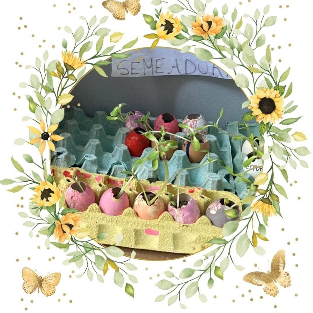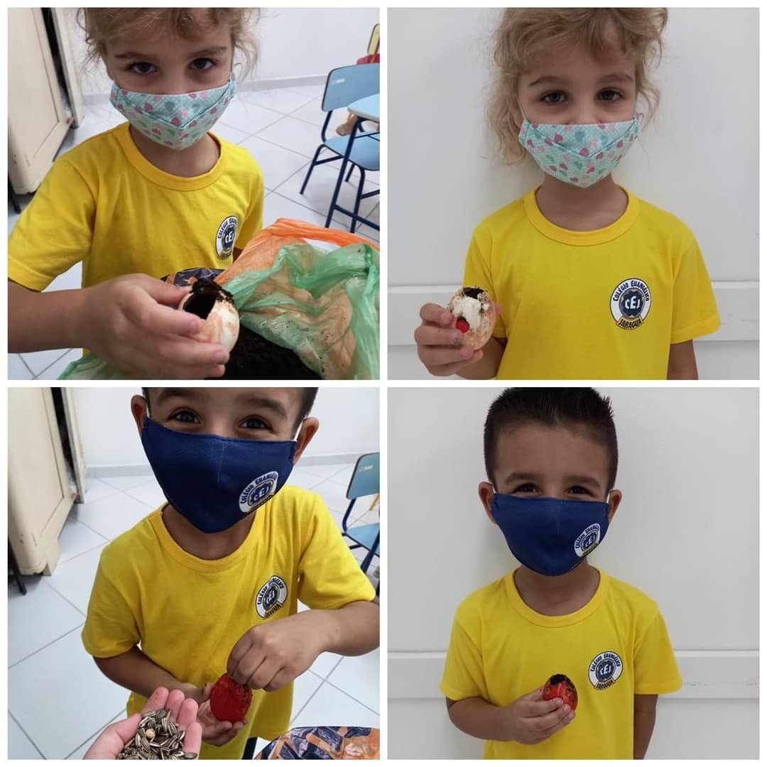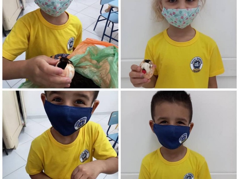 No mês de Março, as turmas do Turno Integral da Educação Infantil Matutino e Vespertino, trabalharam o projeto da Páscoa, no qual uma das propostas, foi o cultivo de girassóis, dentro das casquinhas de ovos, buscando refletir sobre a vida.