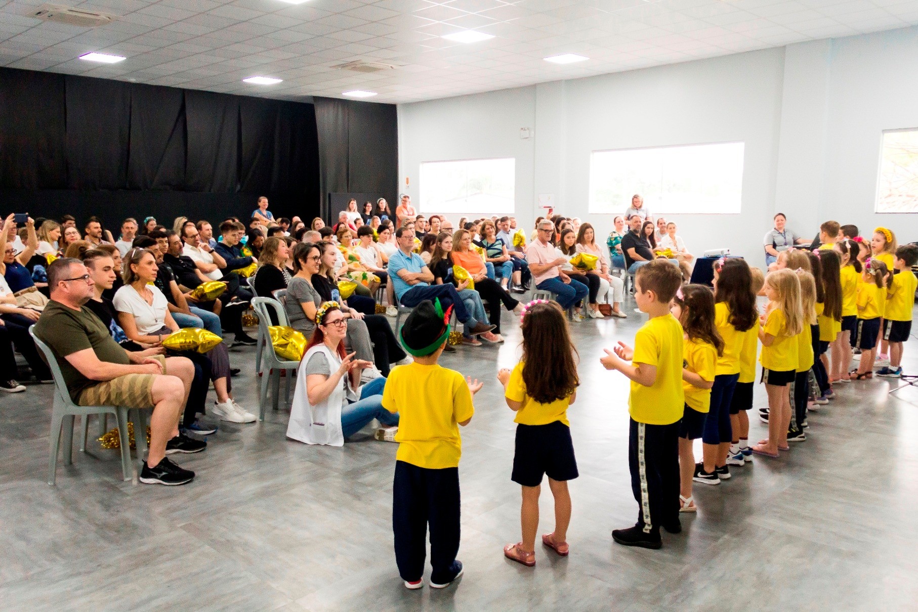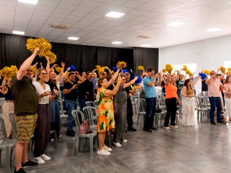E, para finalizar, os professores e equipe escolar “festejaram com confetes e alegria” numa troca de abraços e carinhos. Nem todos foram amarelinhos de pequeninos, mas na trajetória foram chegando e fazendo parte da turma.