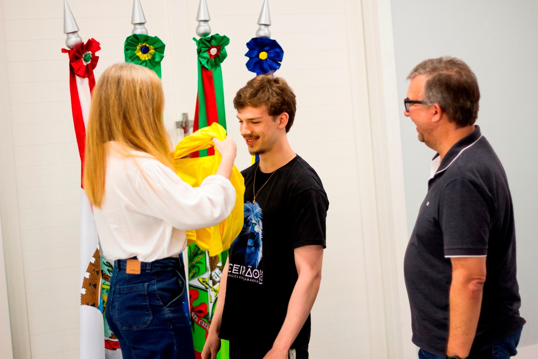Neste momento de despedida todos são presenteados com a camiseta amarela e os pais são convidados a vestir mais uma vez os filhos, relembrando o início dessa trajetória. Nossa mensagem para esse dia é que eles não seguem sozinhos rumo aos próximos desafios, pois levarão as lições para toda a vida que tiveram nestes anos de Colégio Evangélico Jaraguá.