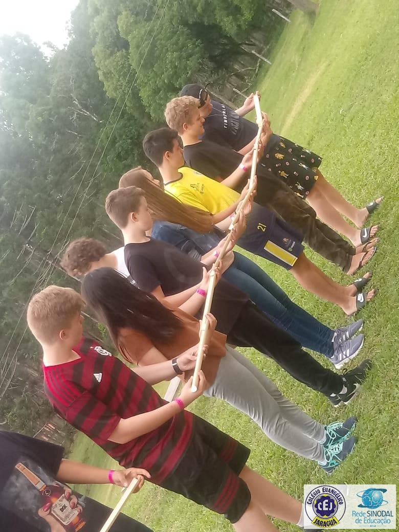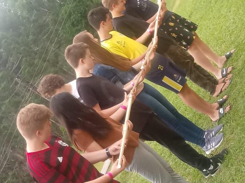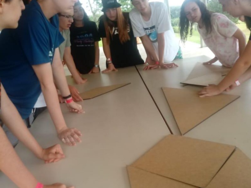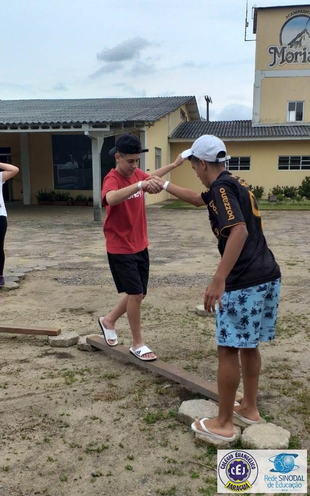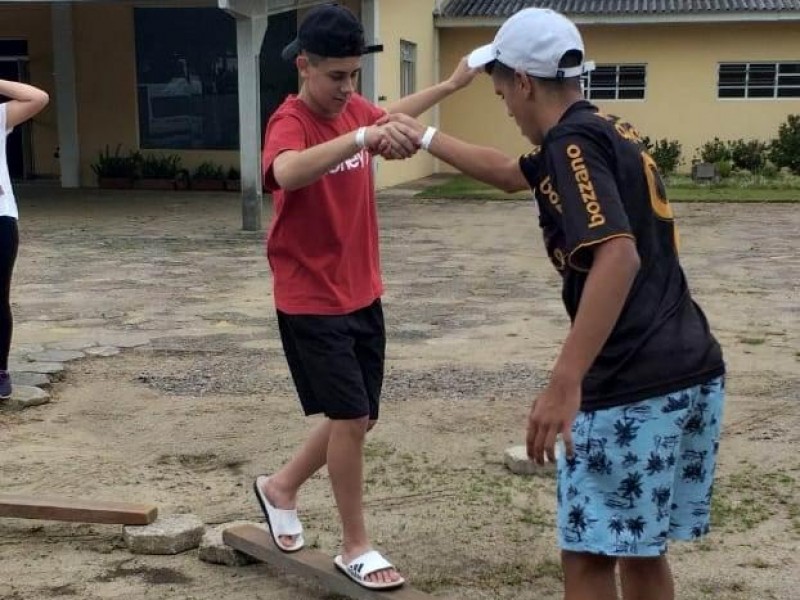 Os(as) alunos(as) vivenciaram momentos de aprendizado através de jogos cooperativos, reflexões, rodas de conversa, atividades de aventuras radicais e uma trilha sensorial através da superação do medo.
