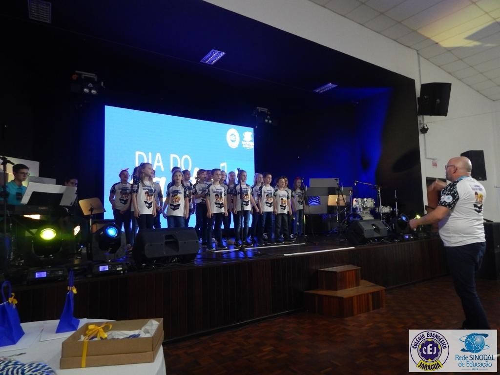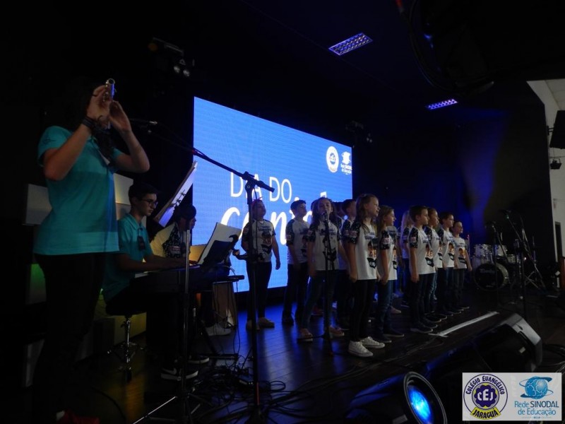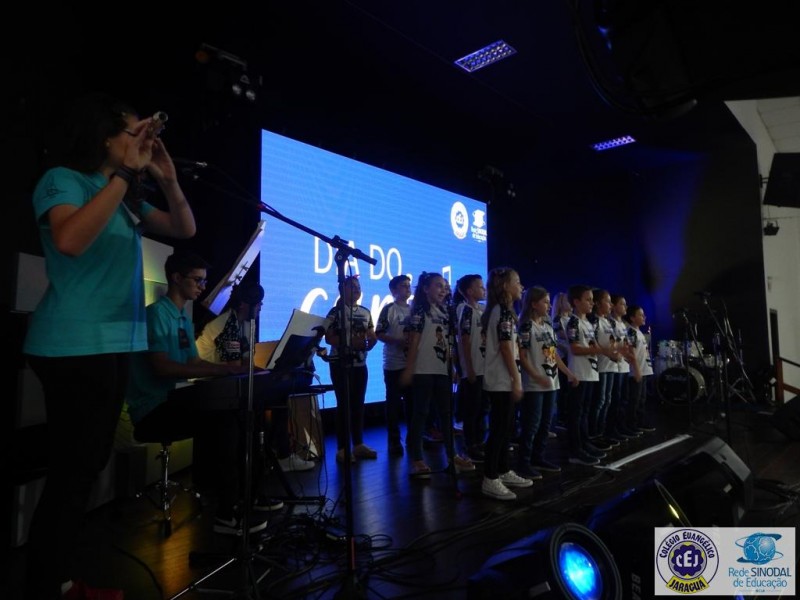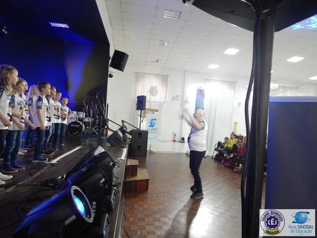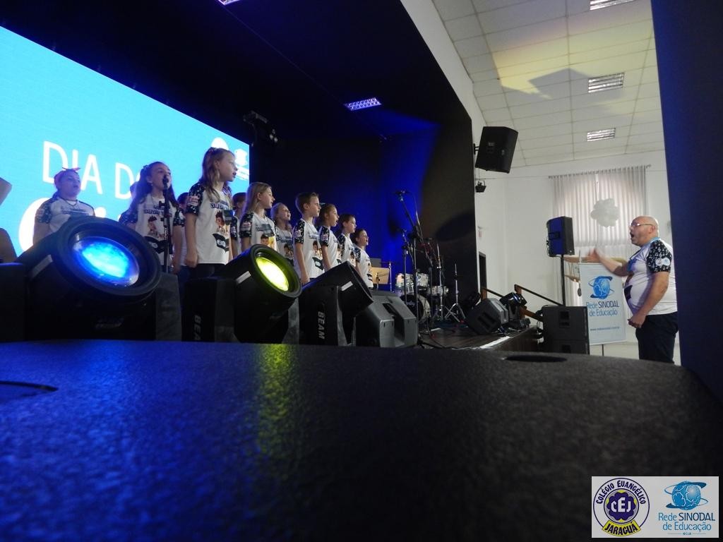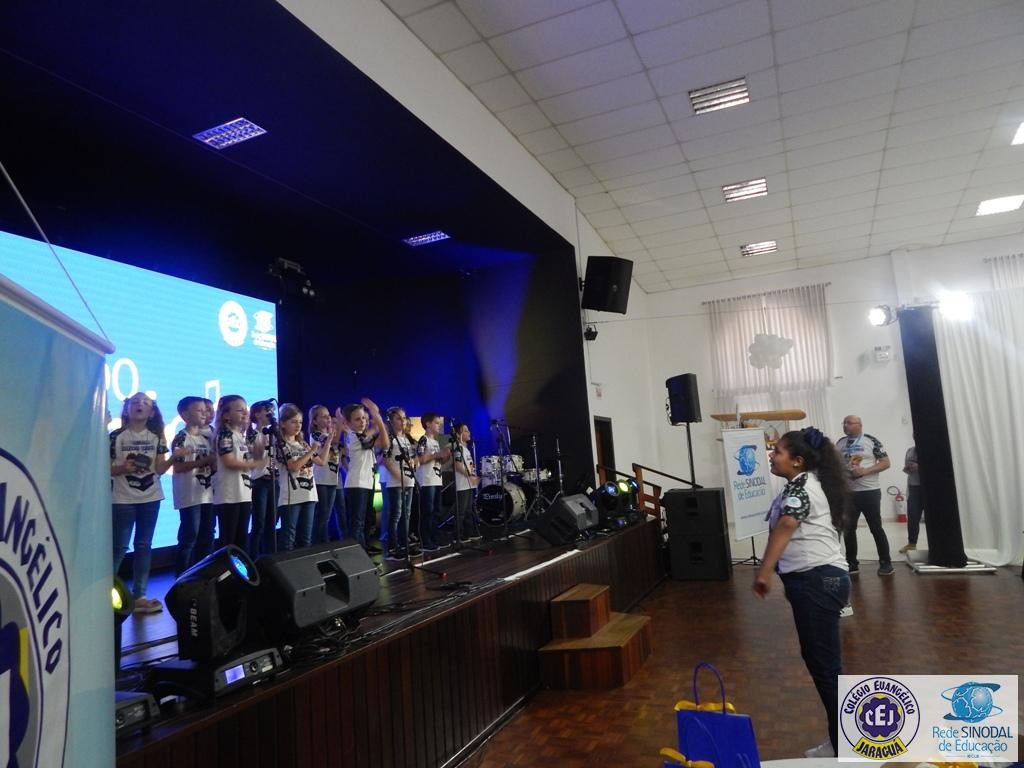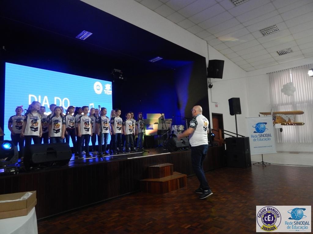 Foi um dia especial com a participação de 120 alunos coralistas de 4 escolas, Colégio Sinodal Doutor Blumenau de Pomerode, Escola Barão do Rio Branco de Blumenau, Colégio Consul Carlos Renaux de Brusque e a escola sede de 2019 Colégio Evangélico Jaraguá.