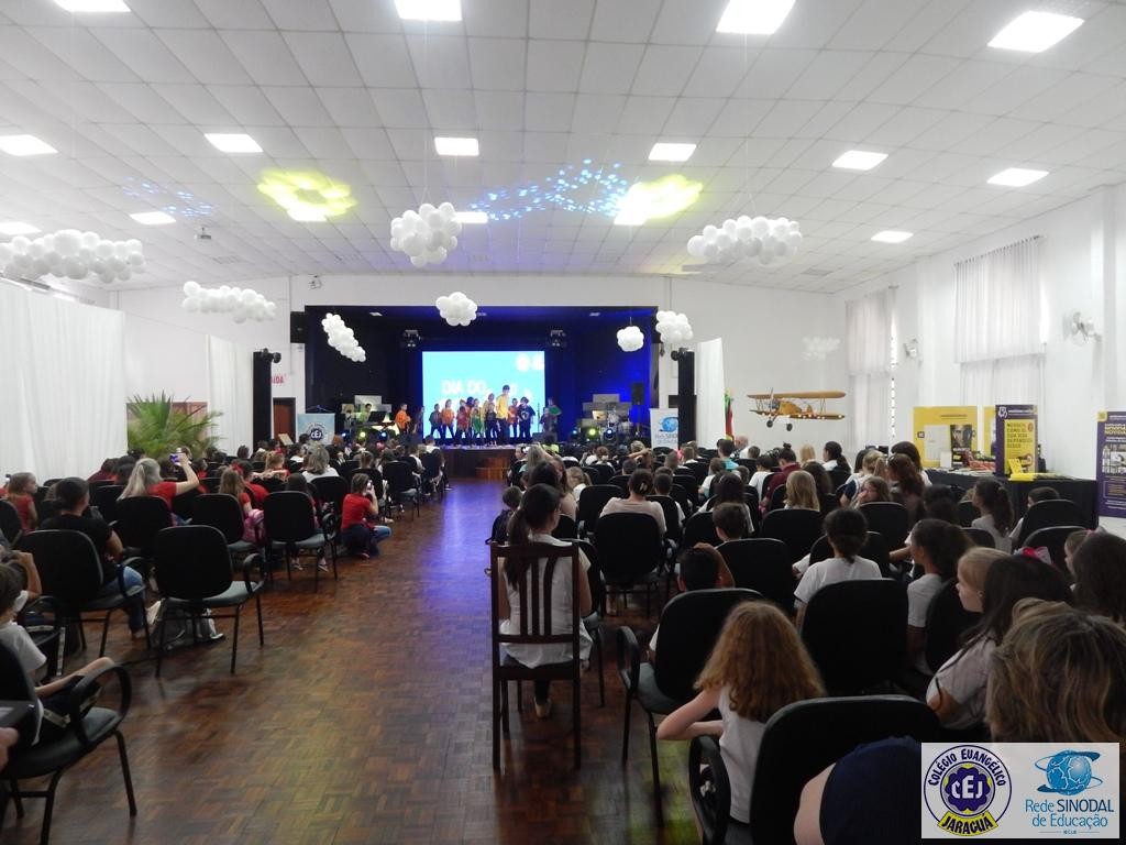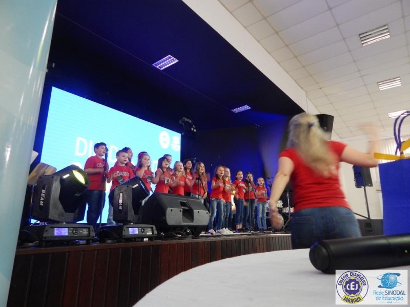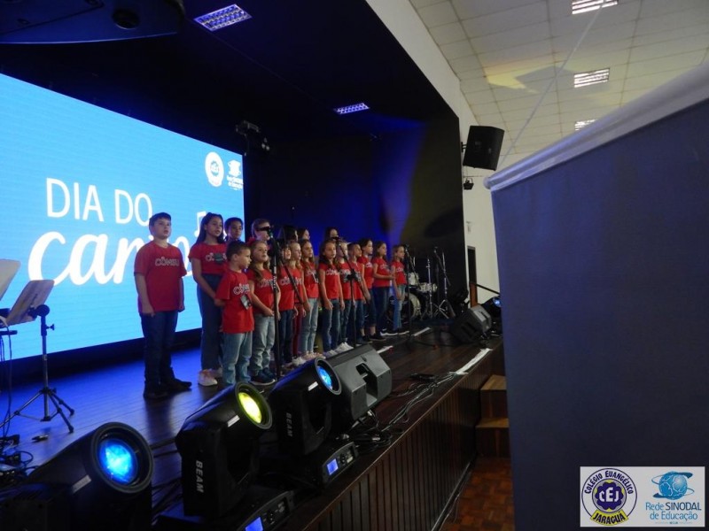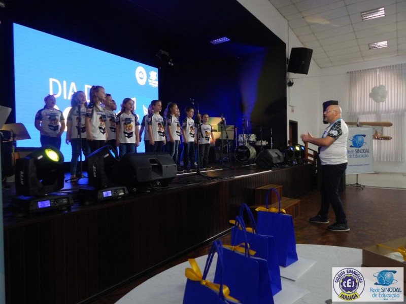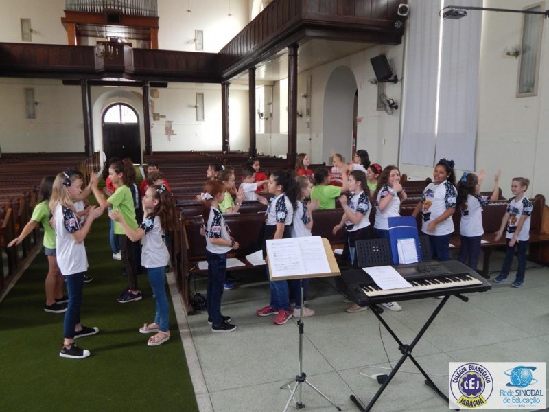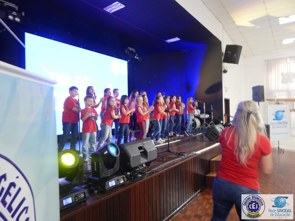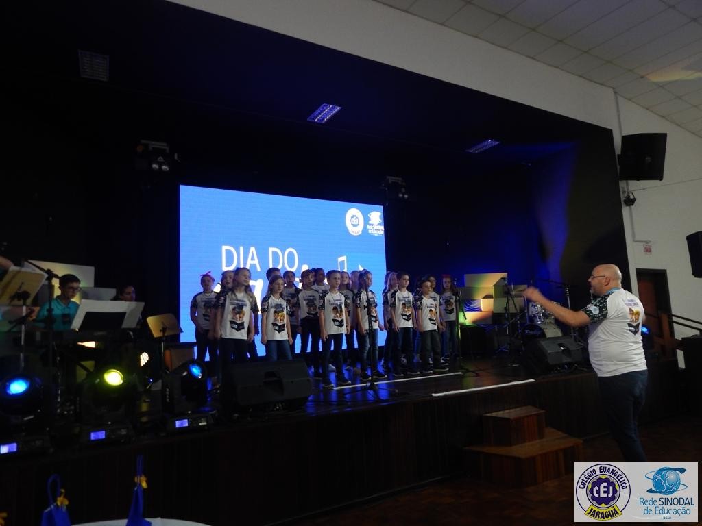 Foi um dia especial com a participação de 120 alunos coralistas de 4 escolas, Colégio Sinodal Doutor Blumenau de Pomerode, Escola Barão do Rio Branco de Blumenau, Colégio Consul Carlos Renaux de Brusque e a escola sede de 2019 Colégio Evangélico Jaraguá.