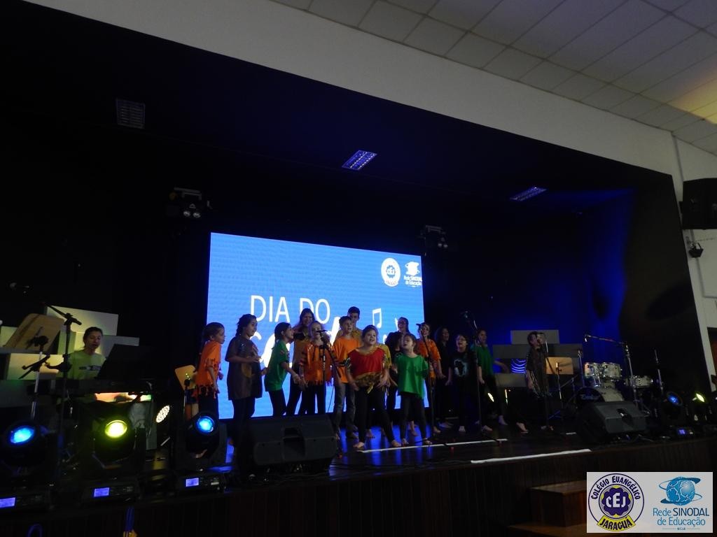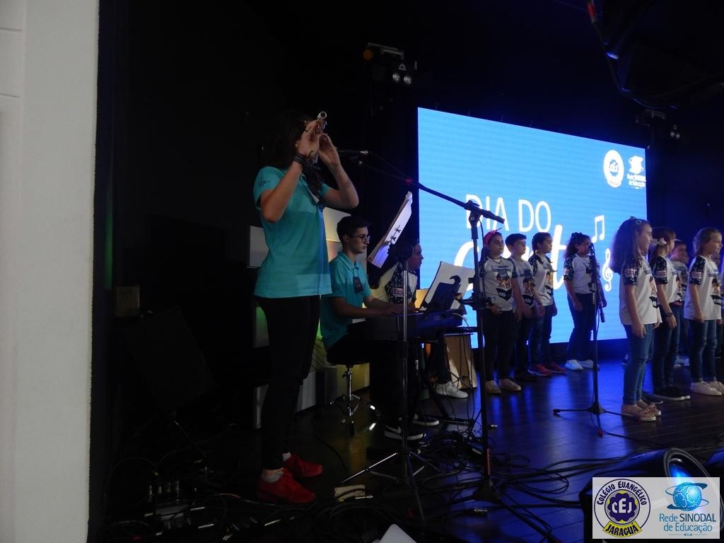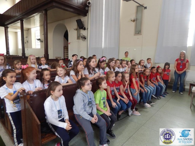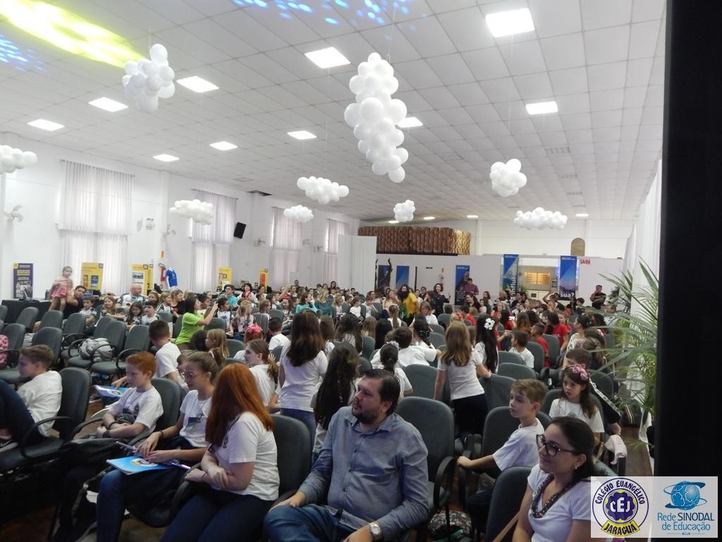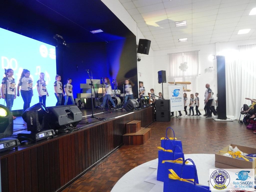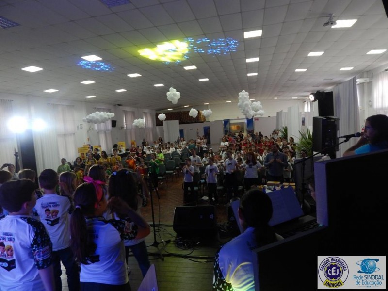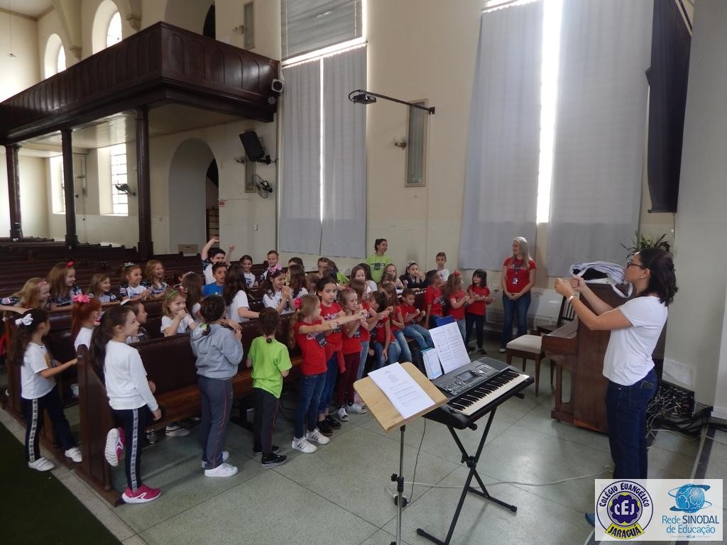 Foi um dia especial com a participação de 120 alunos coralistas de 4 escolas, Colégio Sinodal Doutor Blumenau de Pomerode, Escola Barão do Rio Branco de Blumenau, Colégio Consul Carlos Renaux de Brusque e a escola sede de 2019 Colégio Evangélico Jaraguá.