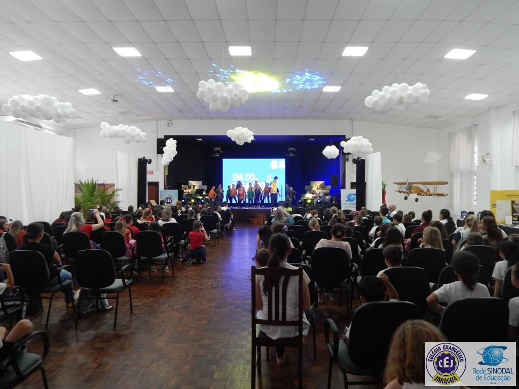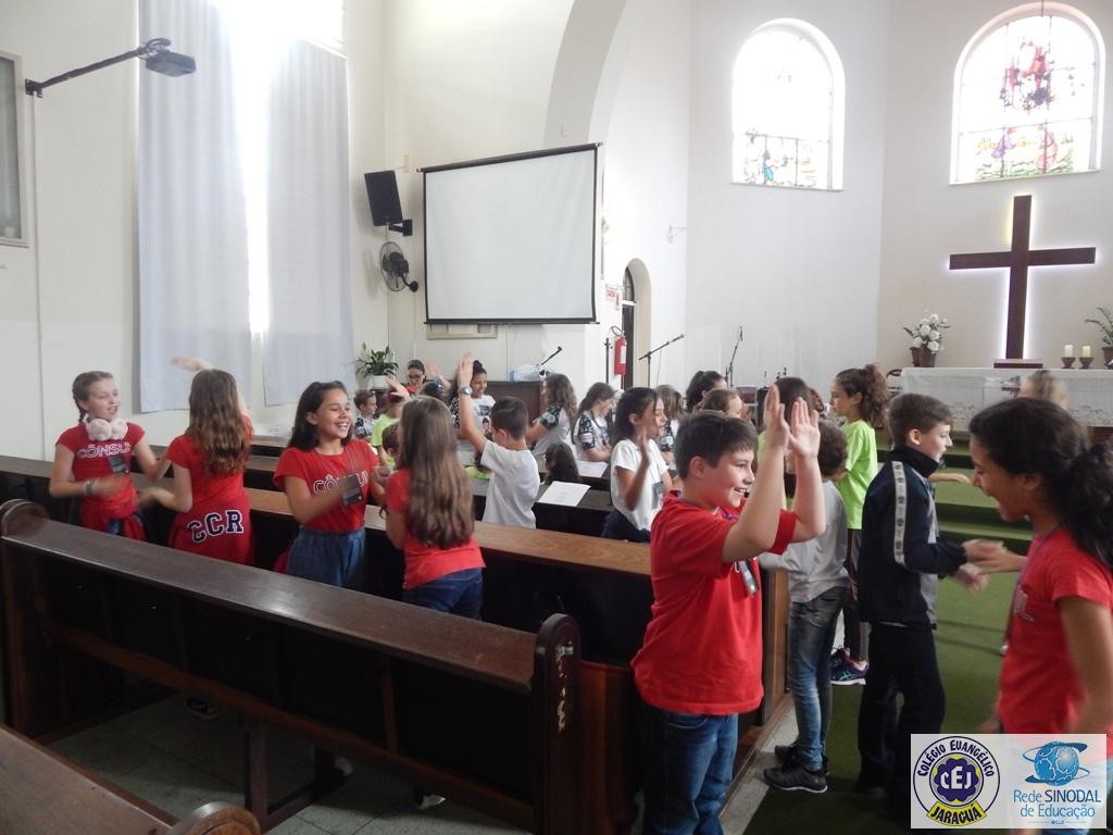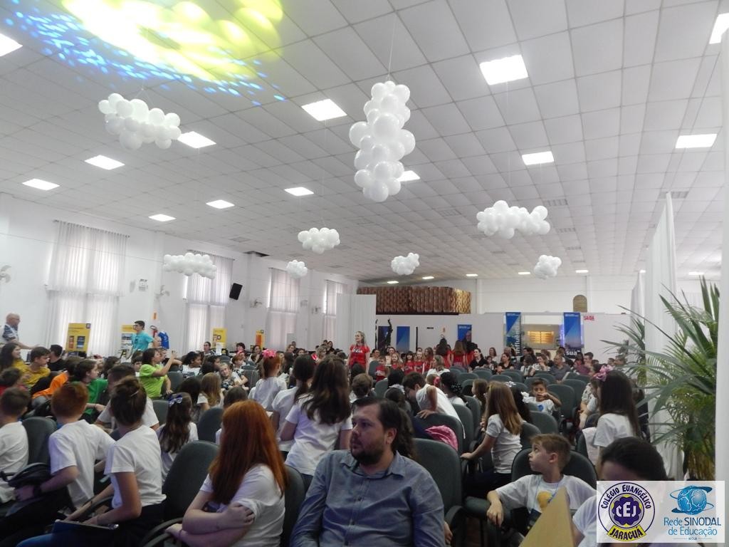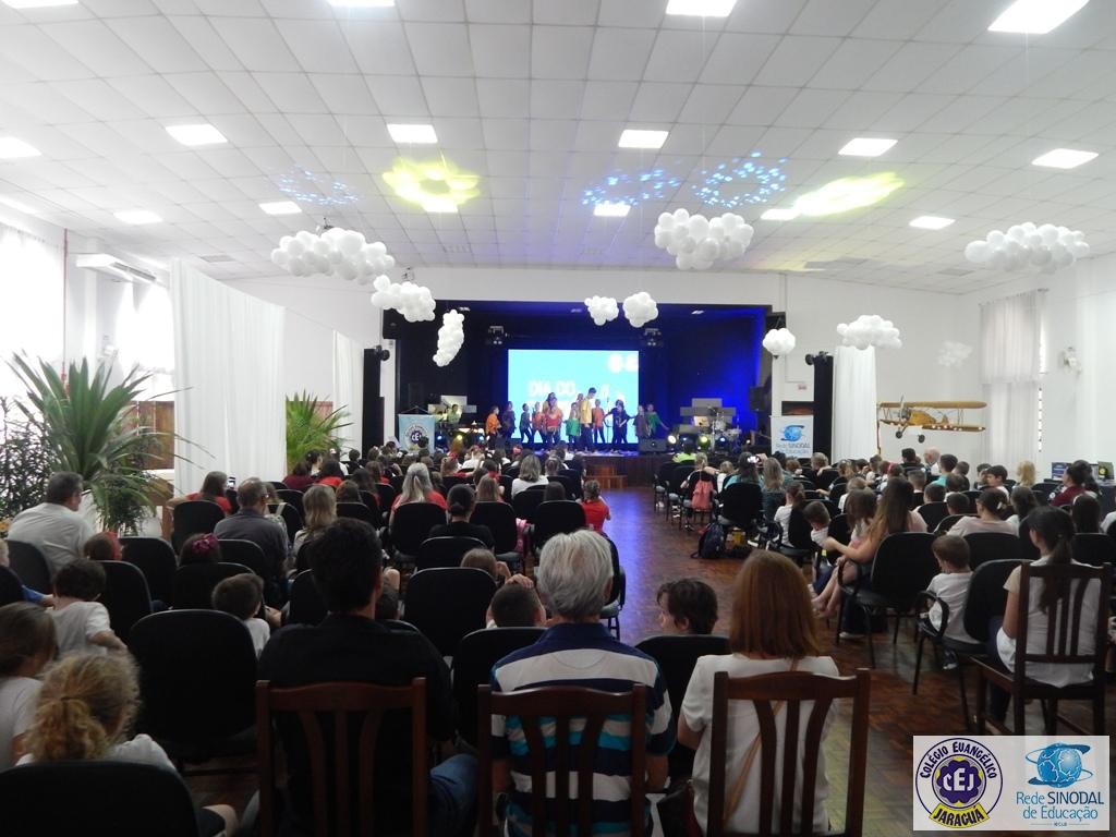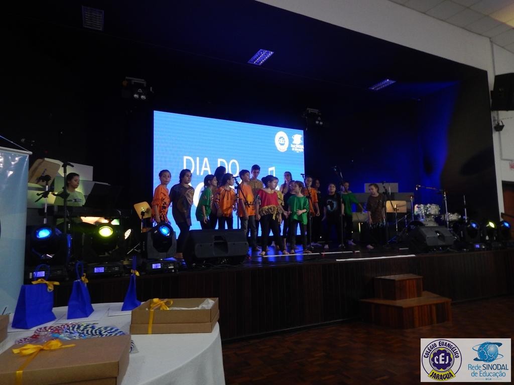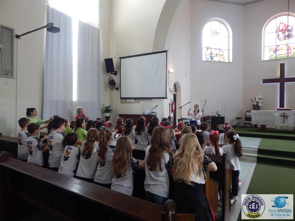 Foi um dia especial com a participação de 120 alunos coralistas de 4 escolas, Colégio Sinodal Doutor Blumenau de Pomerode, Escola Barão do Rio Branco de Blumenau, Colégio Consul Carlos Renaux de Brusque e a escola sede de 2019 Colégio Evangélico Jaraguá.