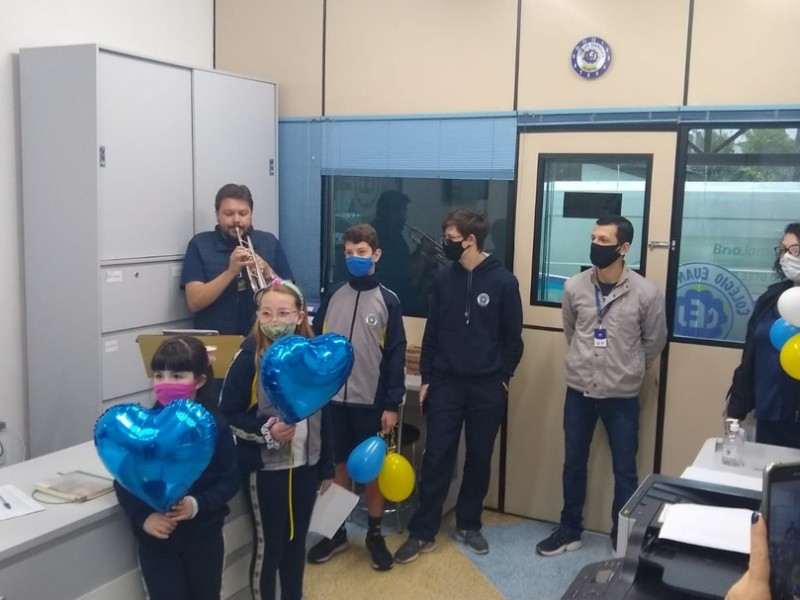 Mais notíciasO dia de hoje foi especial no Colégio Evangélico Jaraguá. Foi dia de homenagear o nosso diretor, professor Leopoldo Fenner, pela passagem do seu dia. Como muito carinho, reunimos representantes de todos os segmentos da escola, que deixaram sua/nossa mensagem com palavras vindas do coração... Palavras que, de fato, tocaram o coração do nosso diretor. O professor Maikon Ponath tornou o momento ainda mais significativo ao som orquestrado da música "Como é grande o meu (o nosso) amor por você".