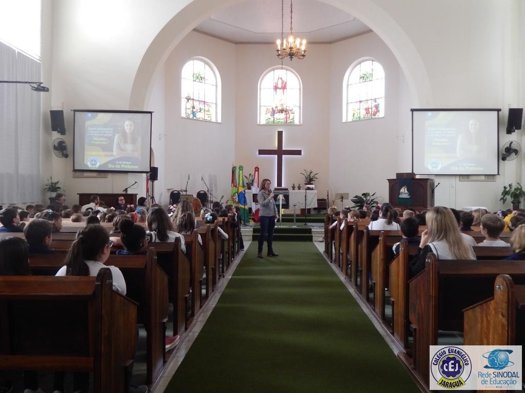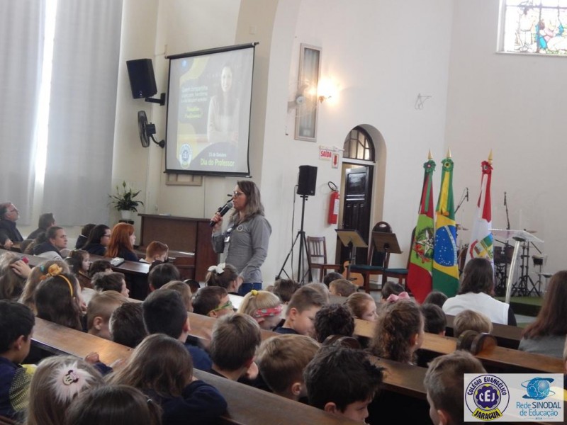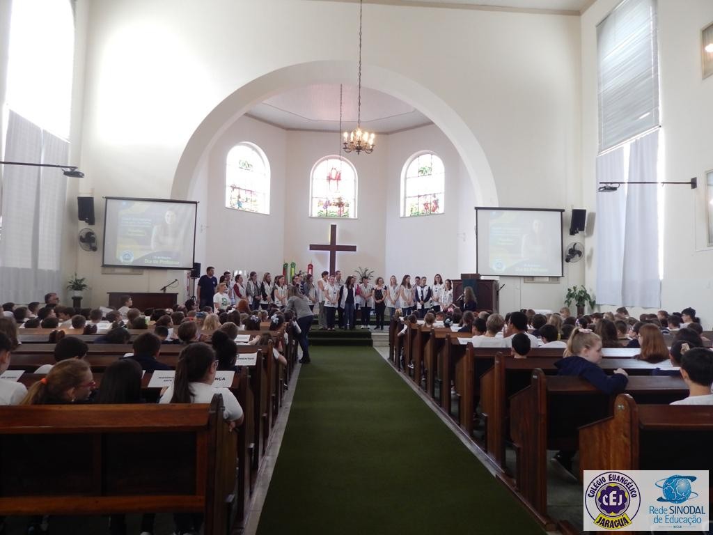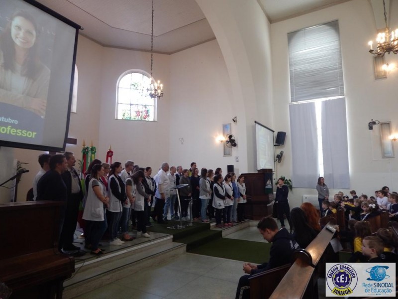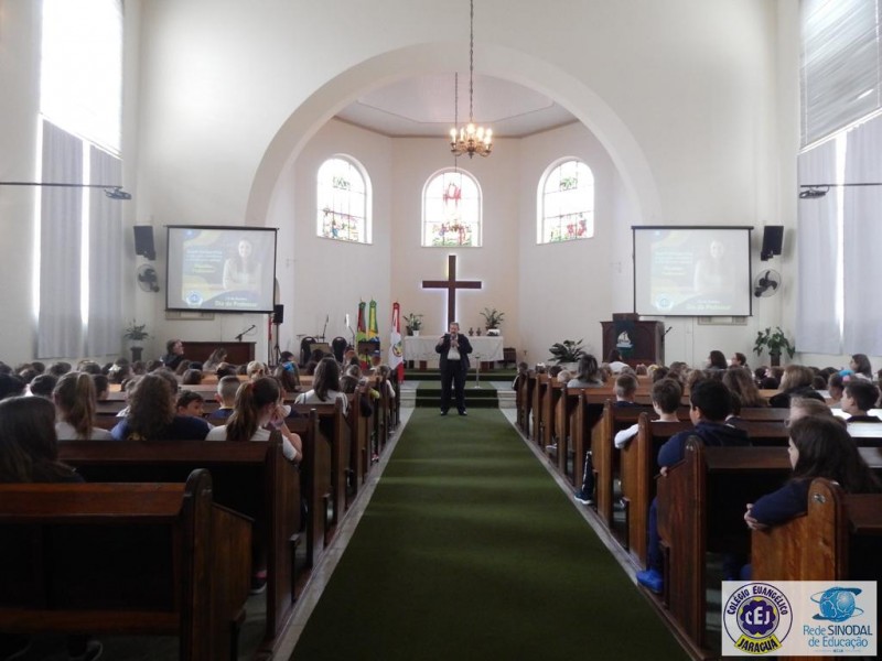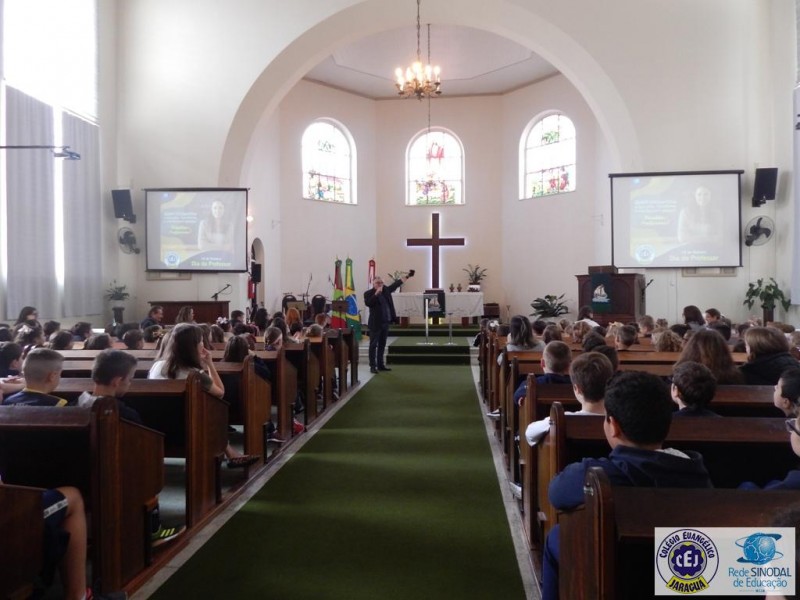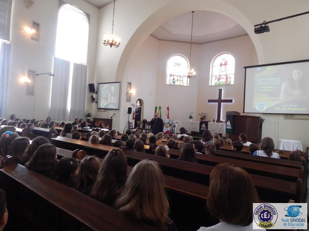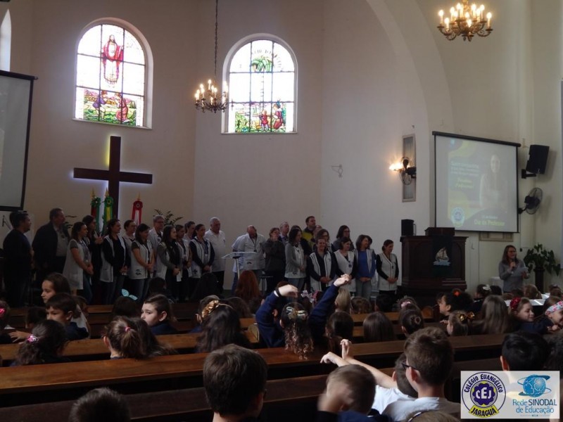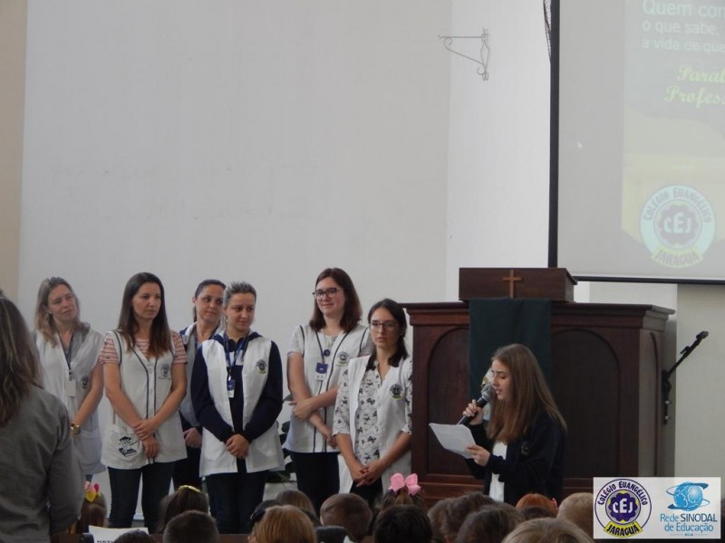 Mais notíciasNa semana do Dia do Professor aconteceram diversas homenagens no Colégio Evangélico Jaraguá. Os professores foram presenteados com um delicioso café na hora do intervalo. Além disso, participaram da homenagem na Igreja, que teve um momento de reflexão com o P. William Bretzke. O tema da homenagem foi “Professor, a profissão que forma todos os professores”, e teve a participação de alunos do canto e do Grêmio Estudantil. Parabéns, professores, pelo seu dia e nossa gratidão pelo empenho e dedicação!