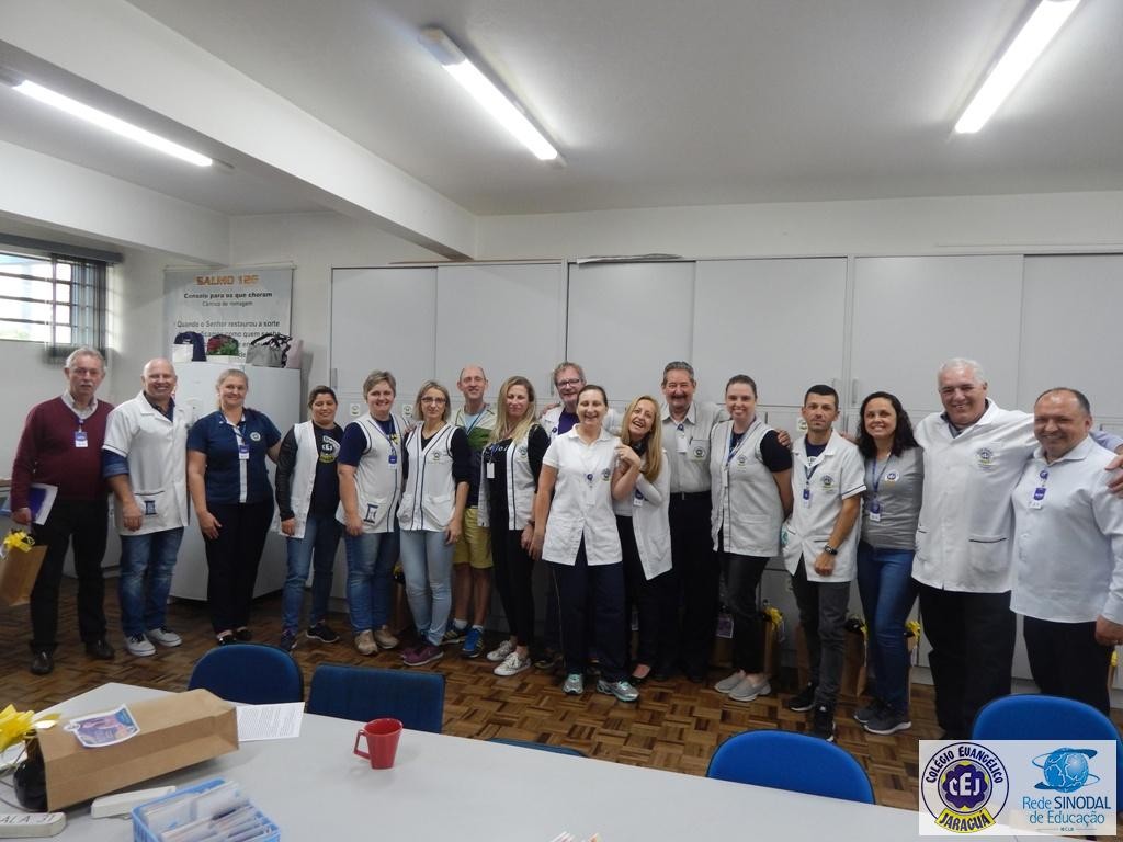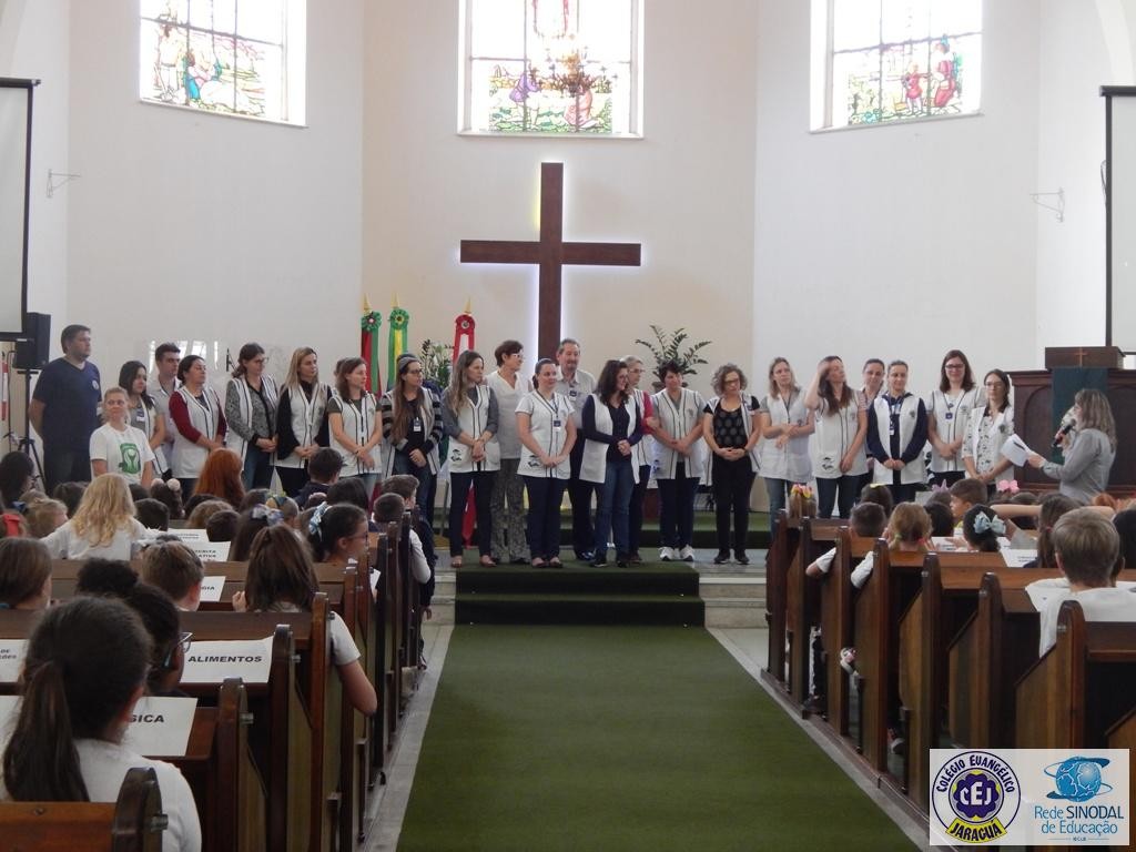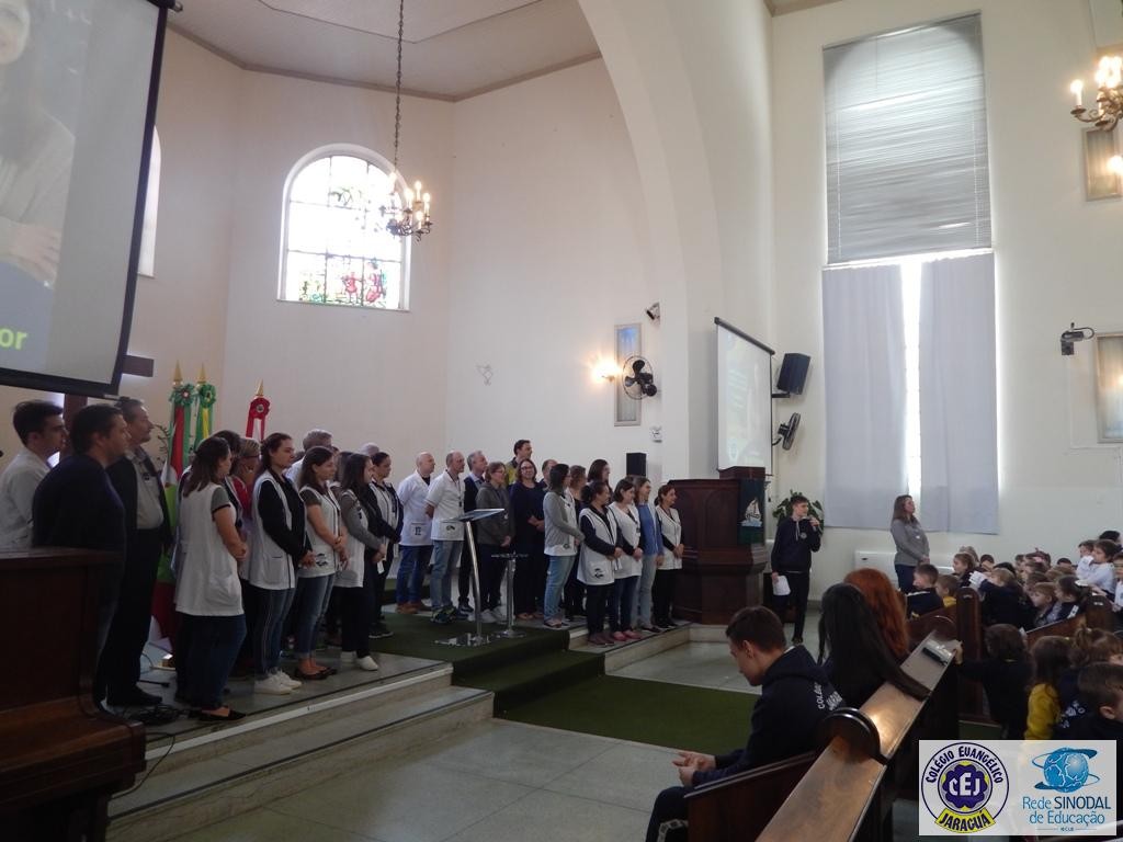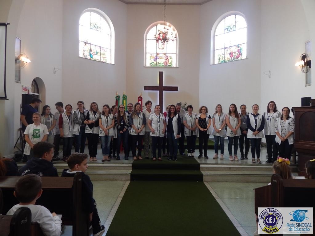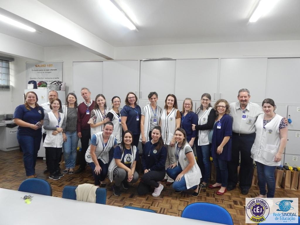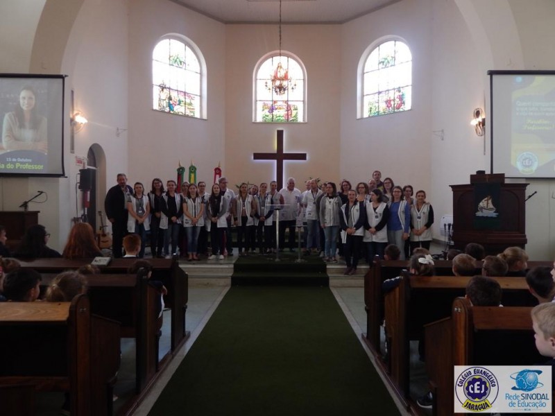 Mais notíciasNa semana do Dia do Professor aconteceram diversas homenagens no Colégio Evangélico Jaraguá. Os professores foram presenteados com um delicioso café na hora do intervalo. Além disso, participaram da homenagem na Igreja, que teve um momento de reflexão com o P. William Bretzke. O tema da homenagem foi “Professor, a profissão que forma todos os professores”, e teve a participação de alunos do canto e do Grêmio Estudantil. Parabéns, professores, pelo seu dia e nossa gratidão pelo empenho e dedicação!